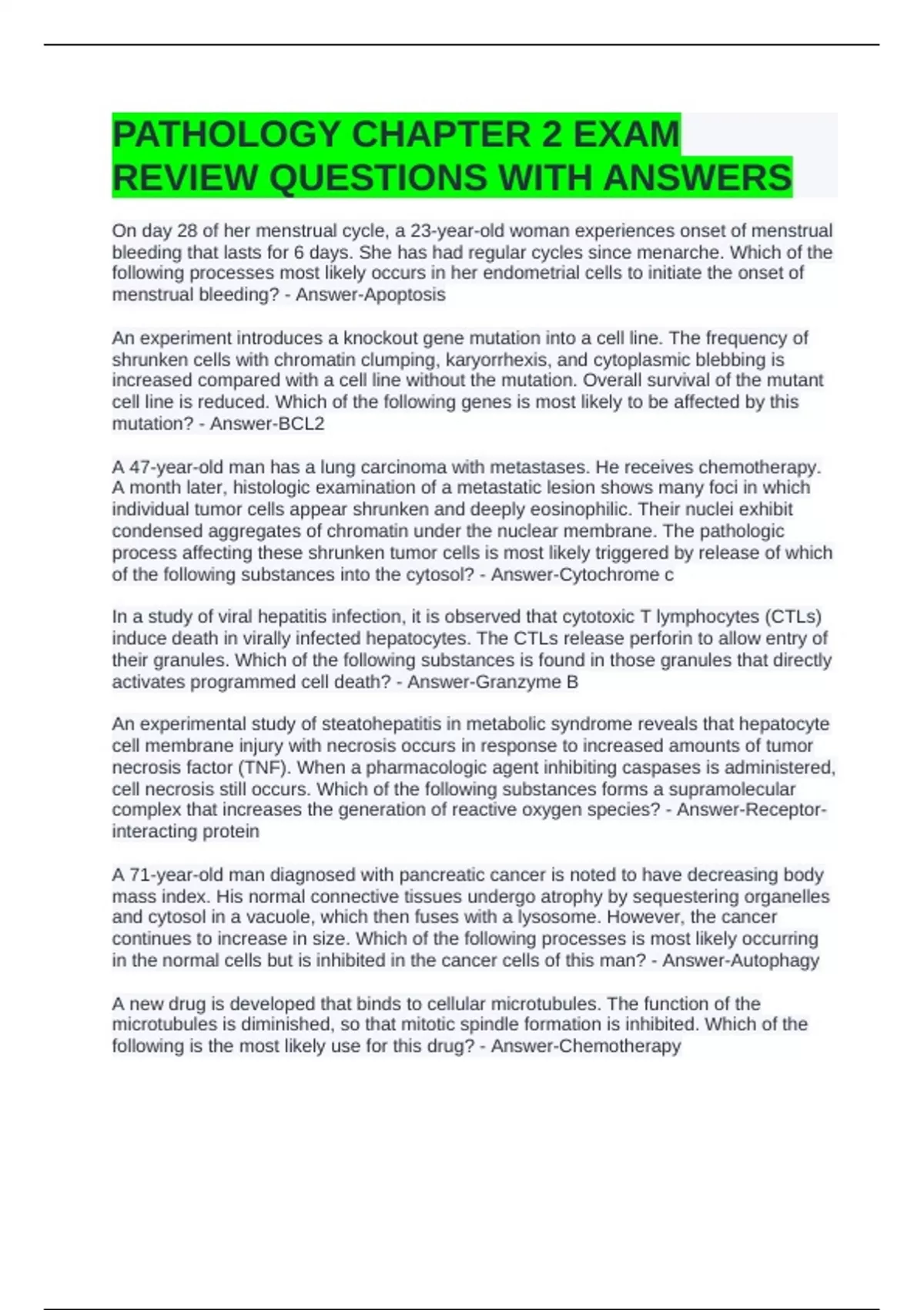 PATHOLOGY CHAPTER 2 EXAM REVIEW QUESTIONS WITH ANSWERS