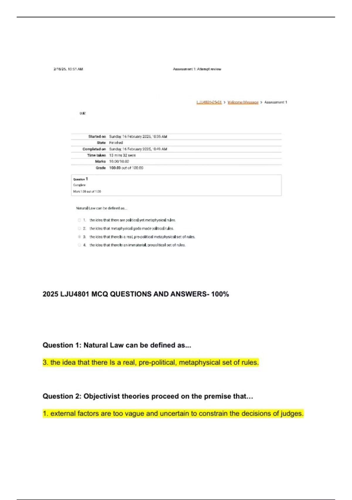2025 LJU4801 MCQ QUESTIONS AND ANSWERS- 100%