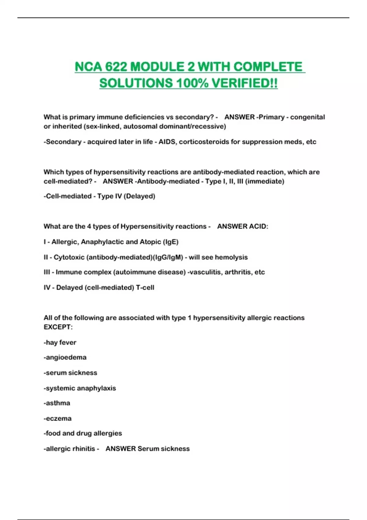 SOLUTIONS 100% VERIFIED!!