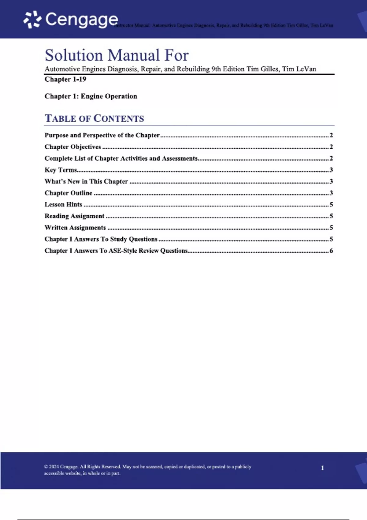 Solution Manual For Automotive Engines Diagnosis, Repair, and Rebuilding 9th Edition by Tim Gilles, Tim