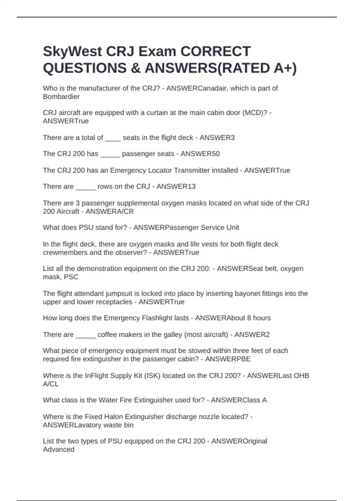 The CRJ 200 has _____ passenger seats - ANSWER50