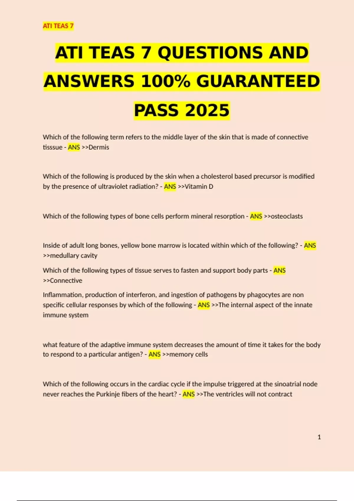 ATI TEAS 7 QUESTIONS AND