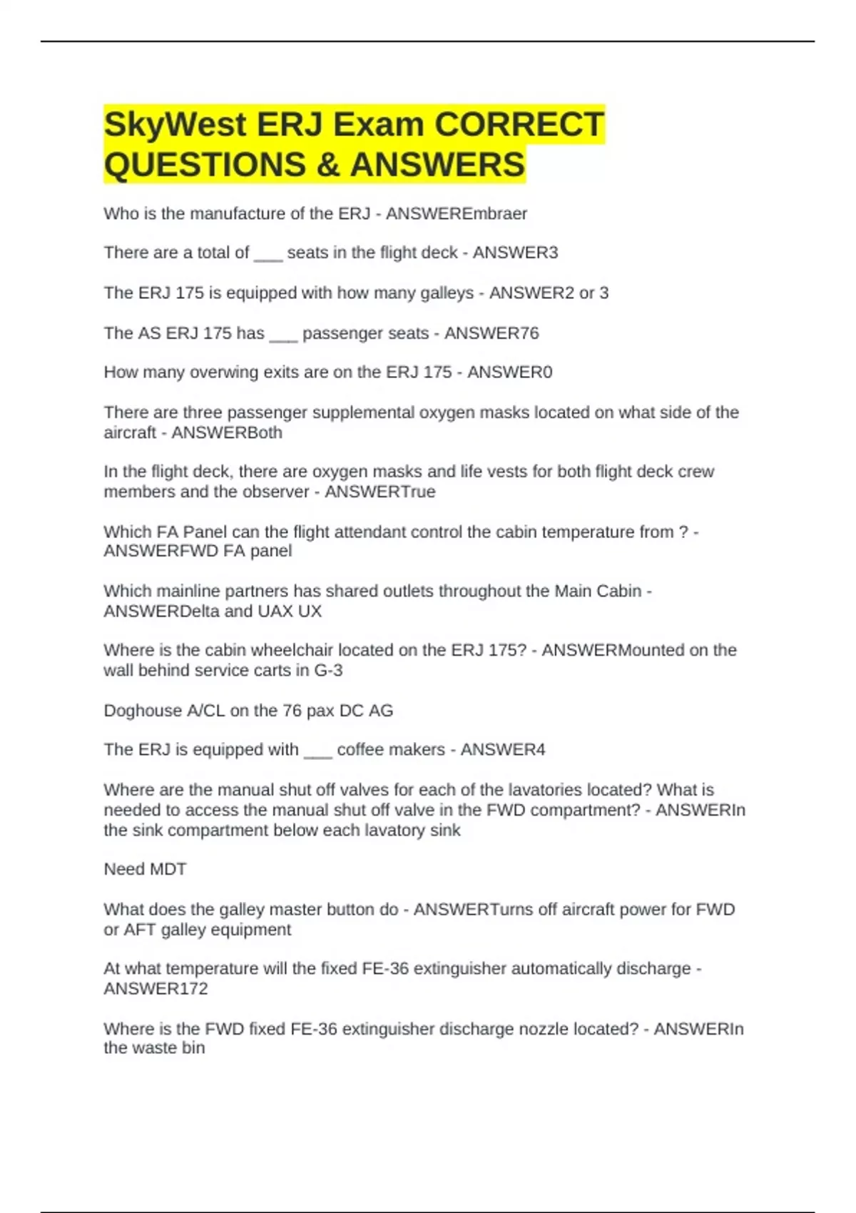 The AS ERJ 175 has ___ passenger seats - ANSWER76