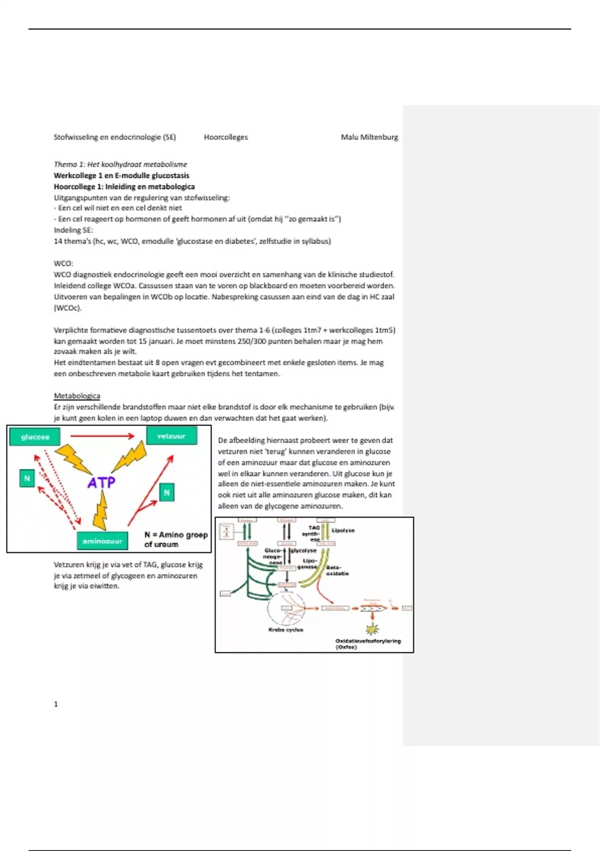 ,Stofwisseling en endocrinologie (SE) Hoorcolleges Malu Miltenburg