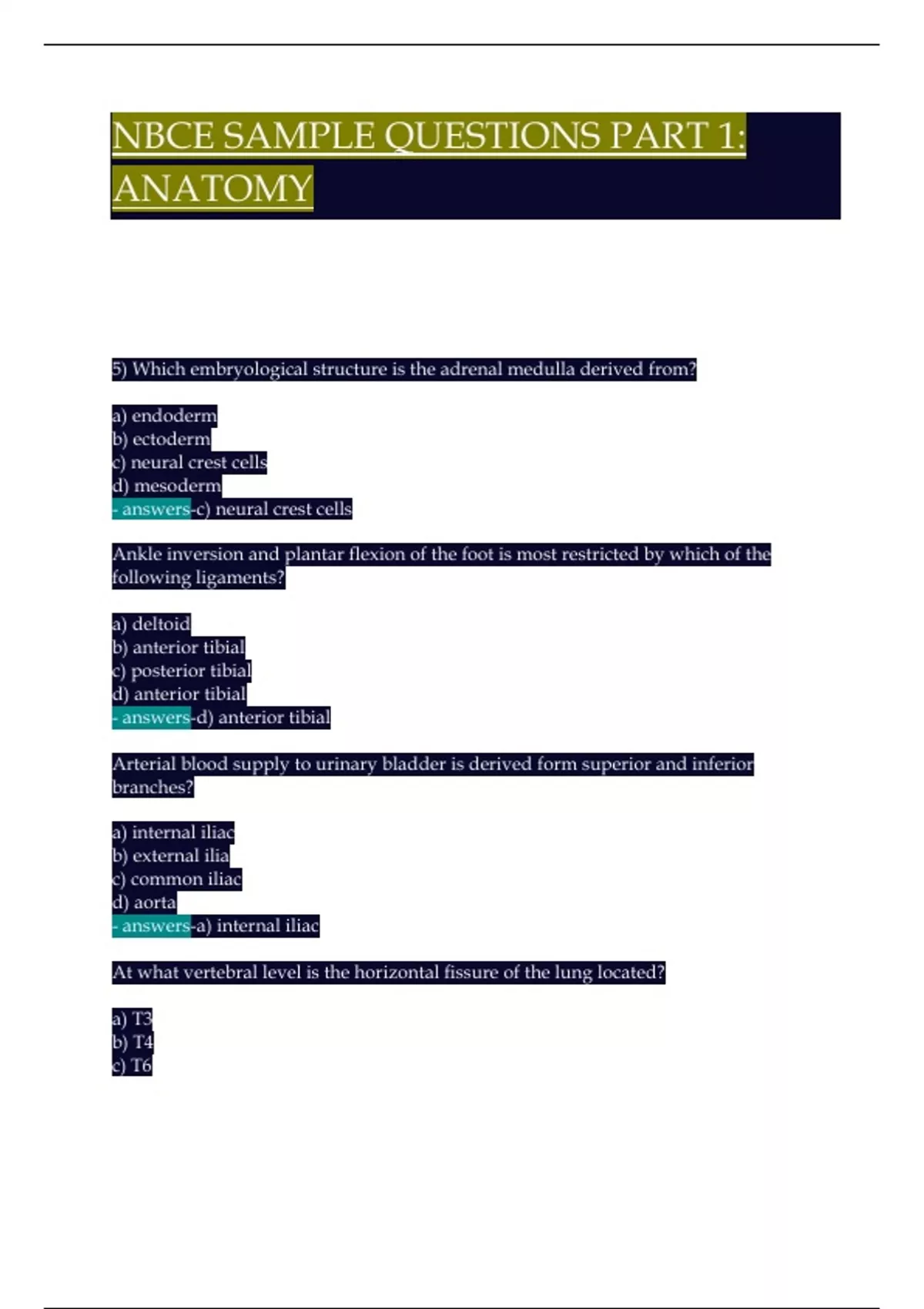 NBCE Part 1 - Anatomy exam test 2025 verified questions and correct answers