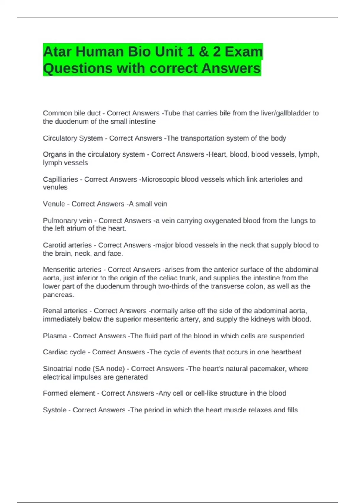 Atar Human Bio Unit 1 & 2 Exam