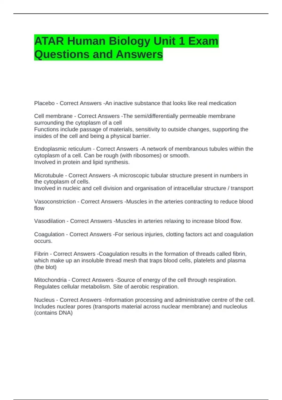 ATAR Human Biology Unit 1 Exam