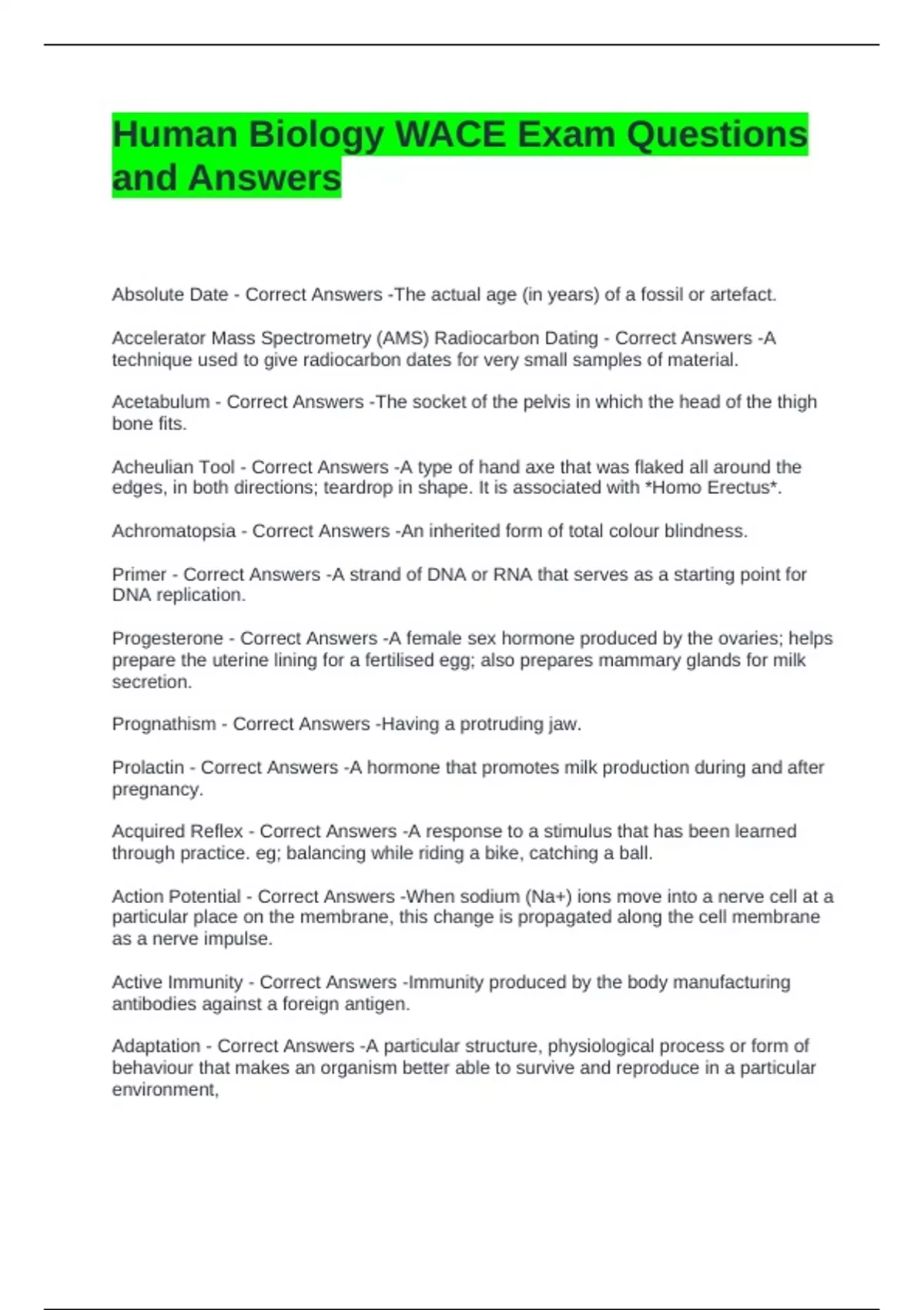 Human Biology WACE Exam Questions and Answers-Graded A