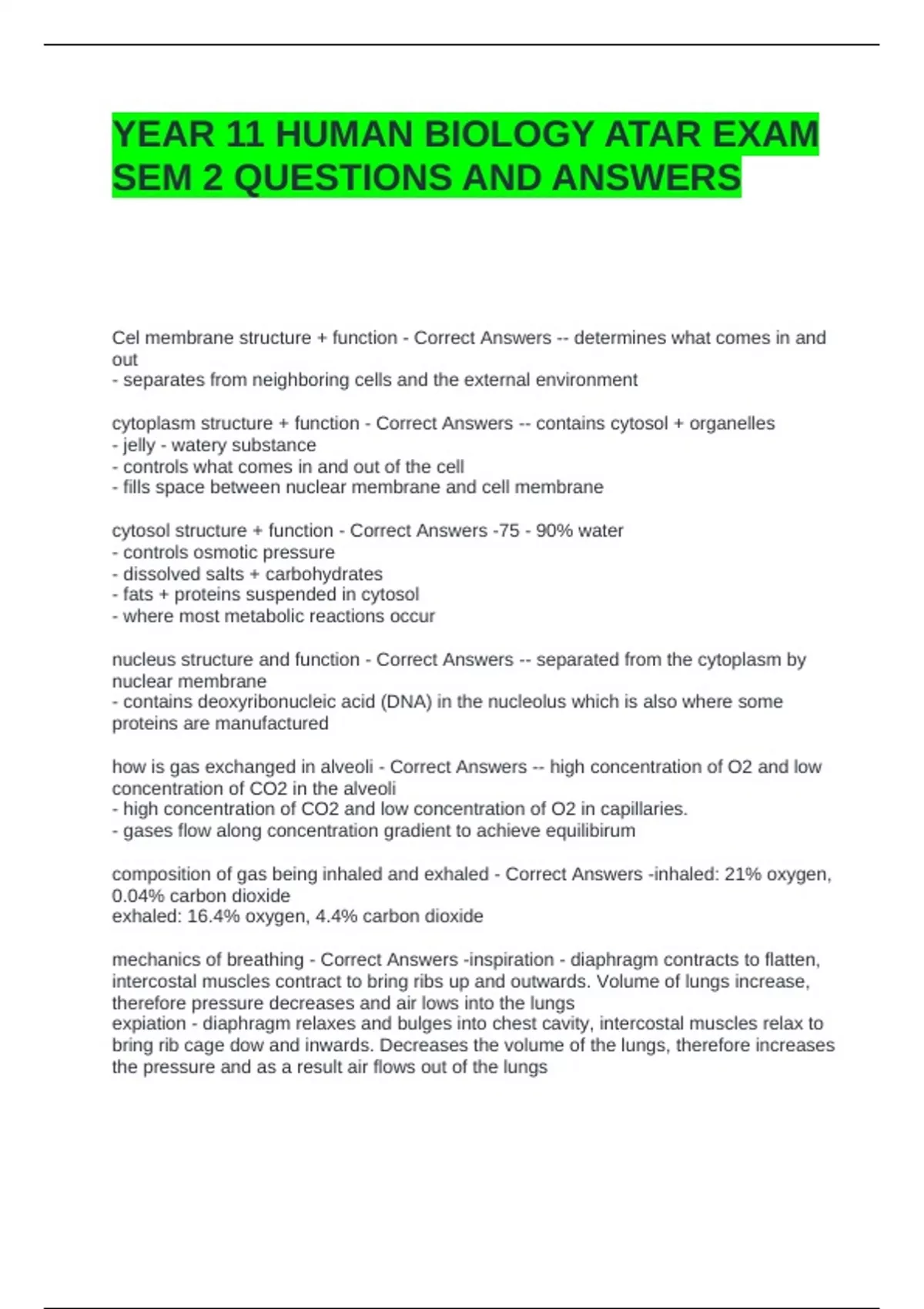 YEAR 11 HUMAN BIOLOGY ATAR EXAM SEM 2 QUESTIONS AND ANSWERS