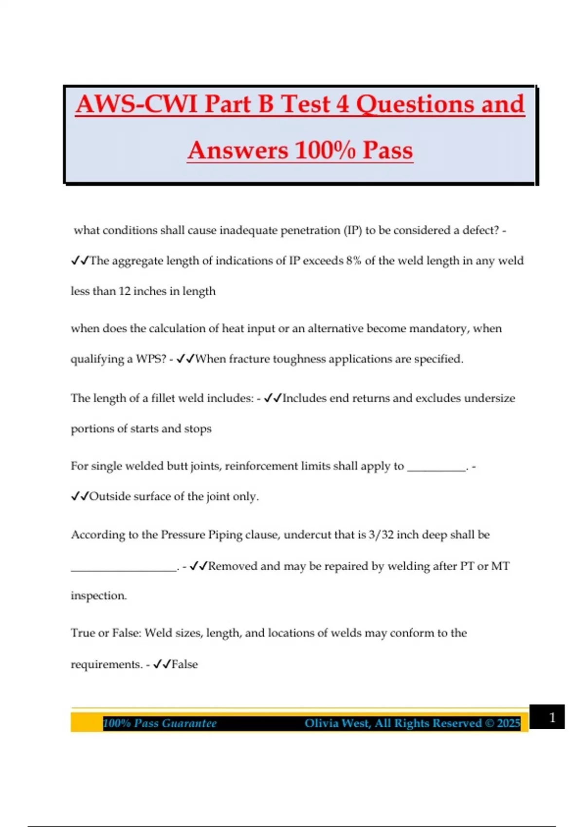 100% Pass Guarantee Olivia West, All Rights Reserved © 2025 1