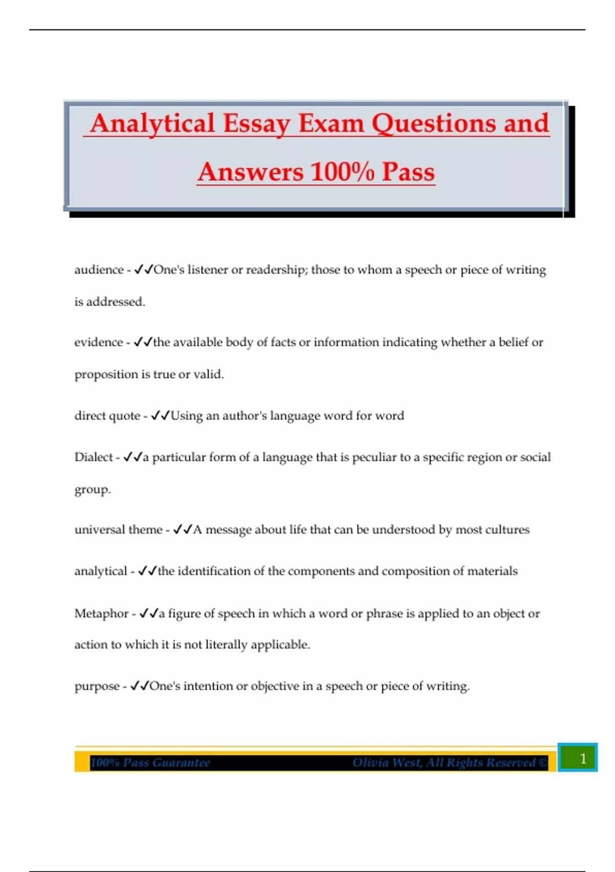 100% Pass Guarantee Olivia West, All Rights Reserved © 1