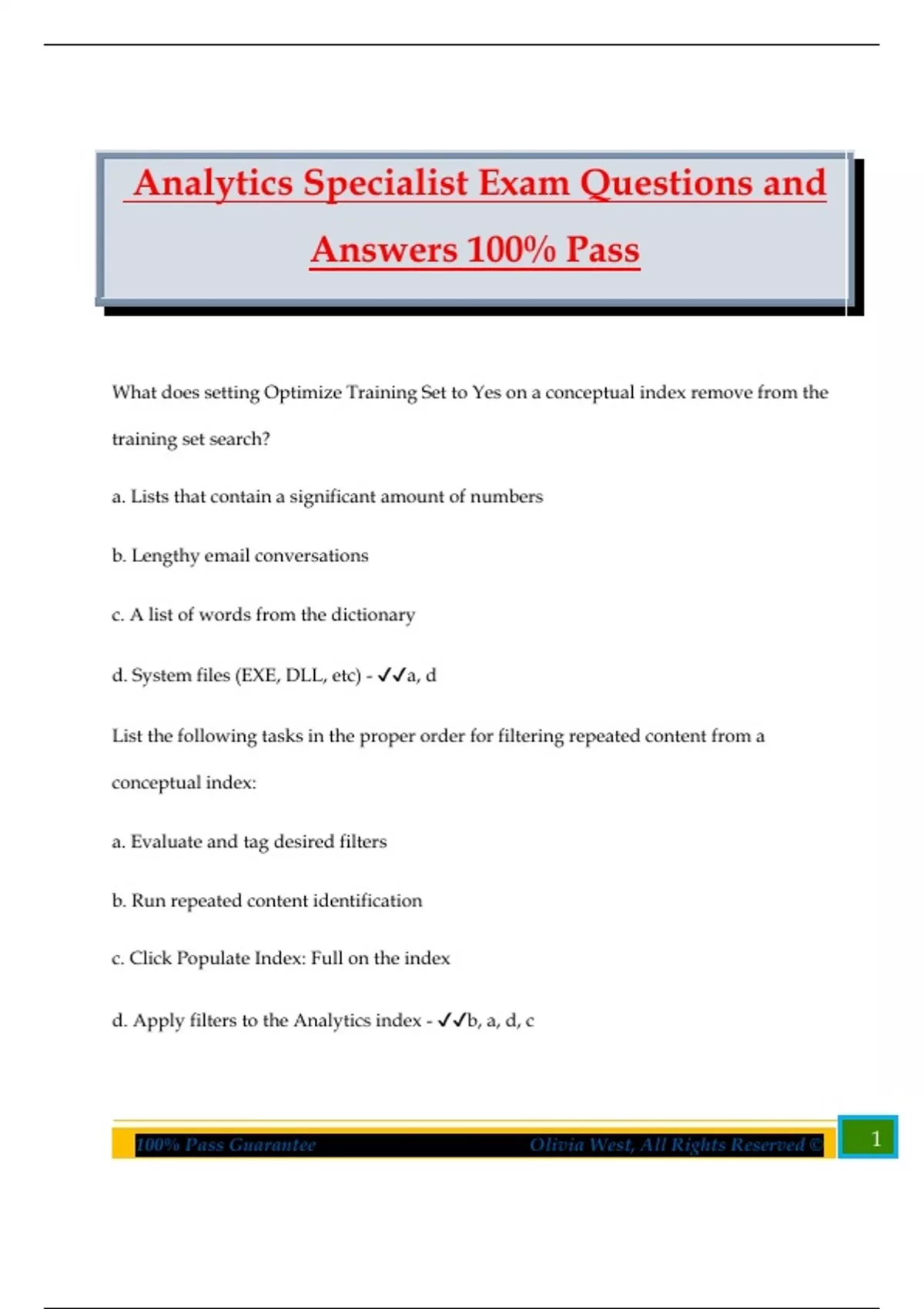 100% Pass Guarantee Olivia West, All Rights Reserved © 1