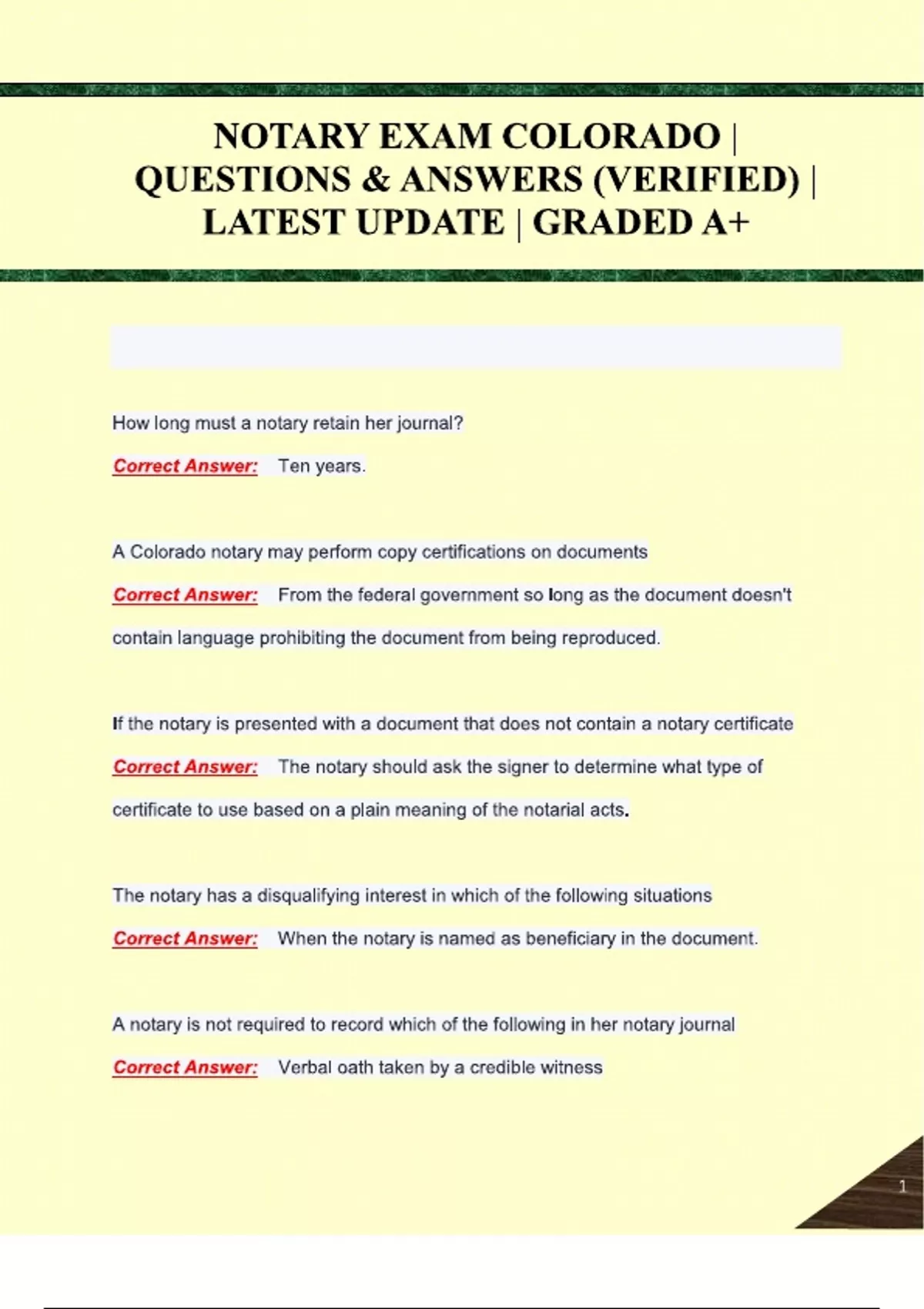 COLORADO NOTARY PUBLIC EXAM 2024/2025 WITH QUESTIONS AND ANSWERS