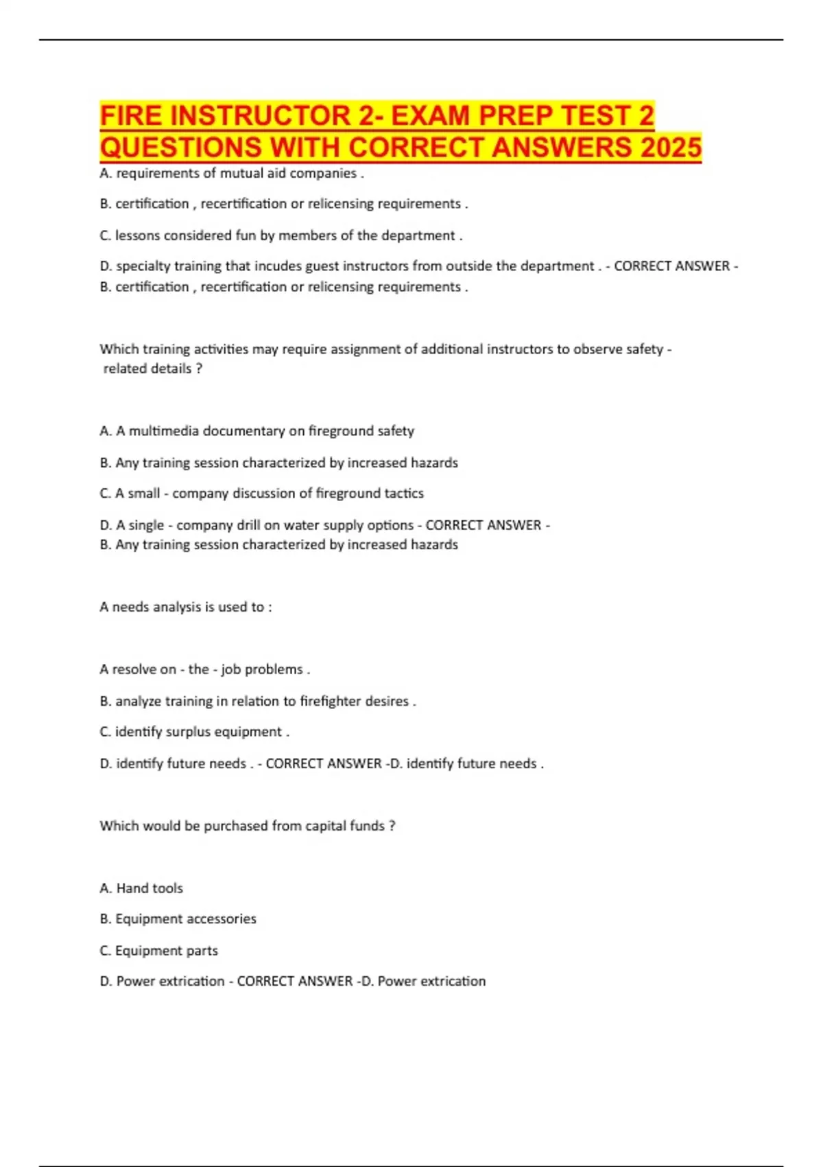 FIRE INSTRUCTOR 2- EXAM PREP TEST 2