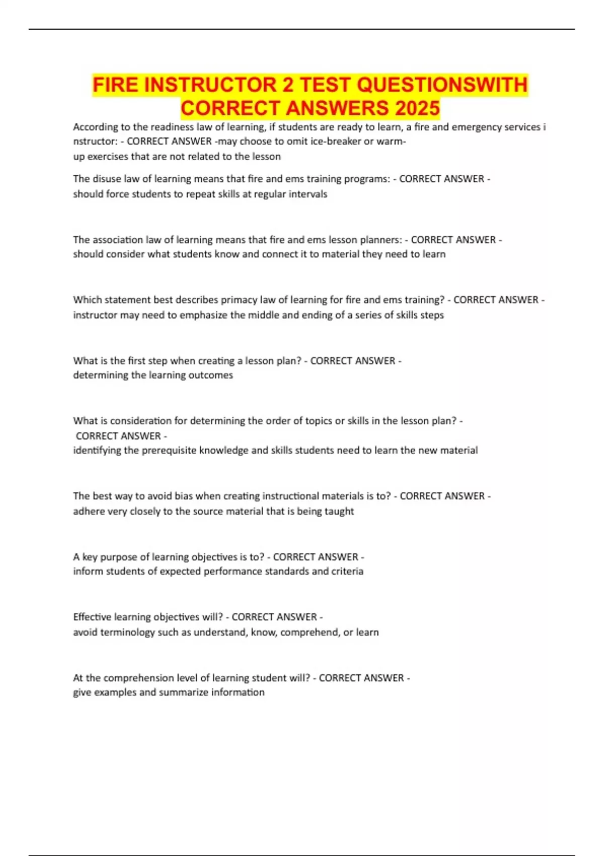 FIRE INSTRUCTOR 2 TEST QUESTIONSWITH