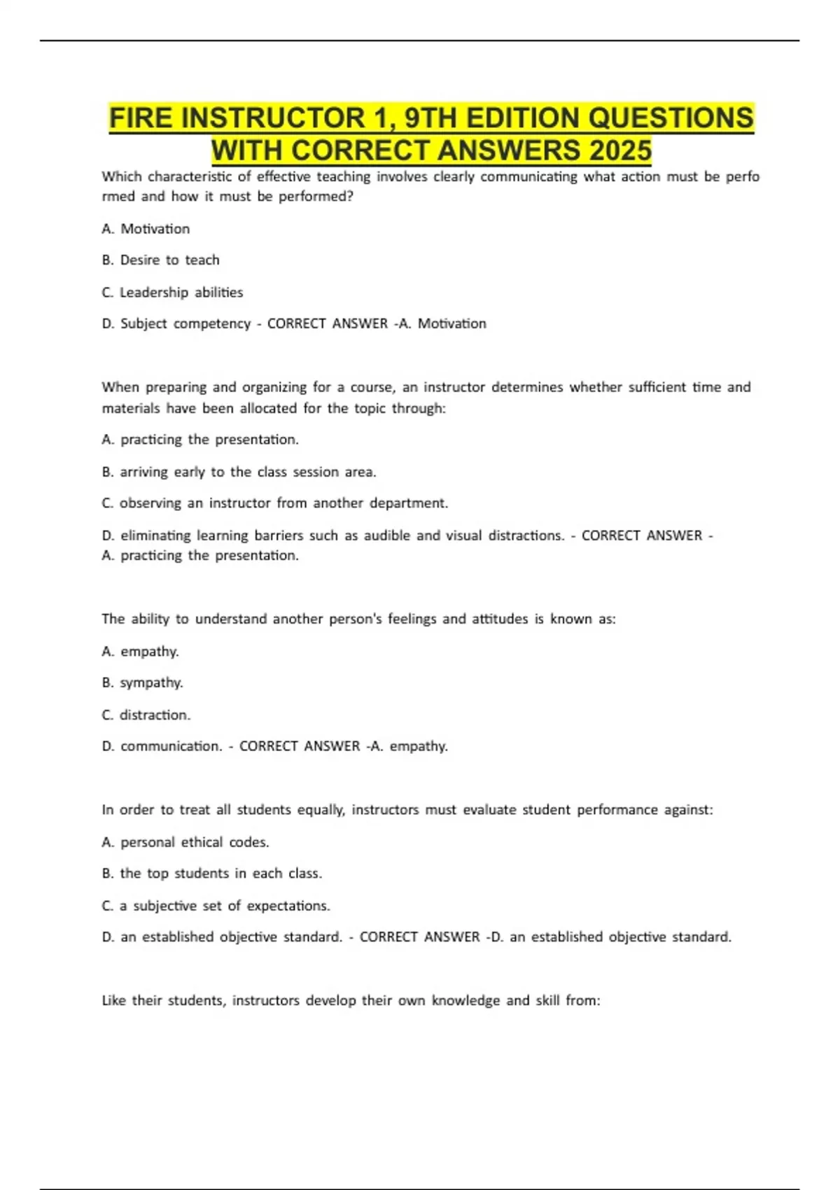 FIRE INSTRUCTOR 1, 9TH EDITION QUESTIONS