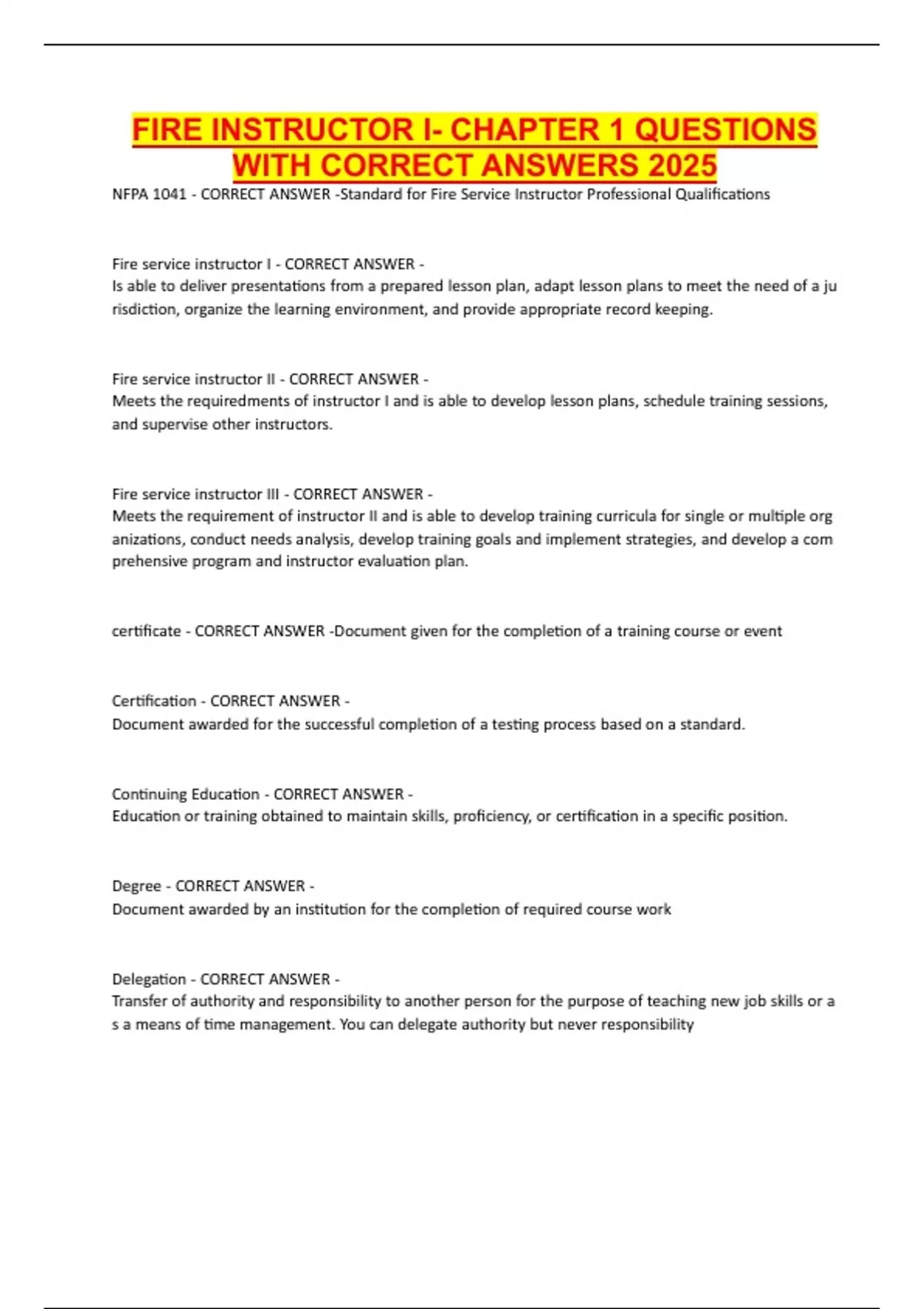 FIRE INSTRUCTOR I- CHAPTER 1 QUESTIONS