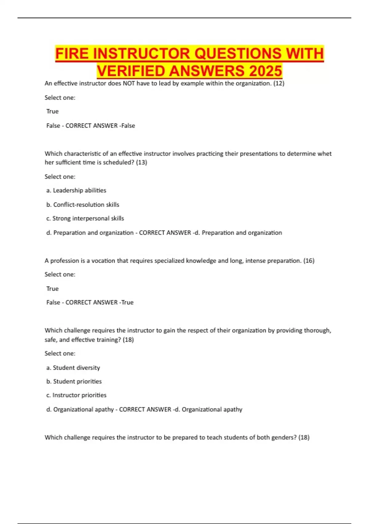 FIRE INSTRUCTOR QUESTIONS WITH