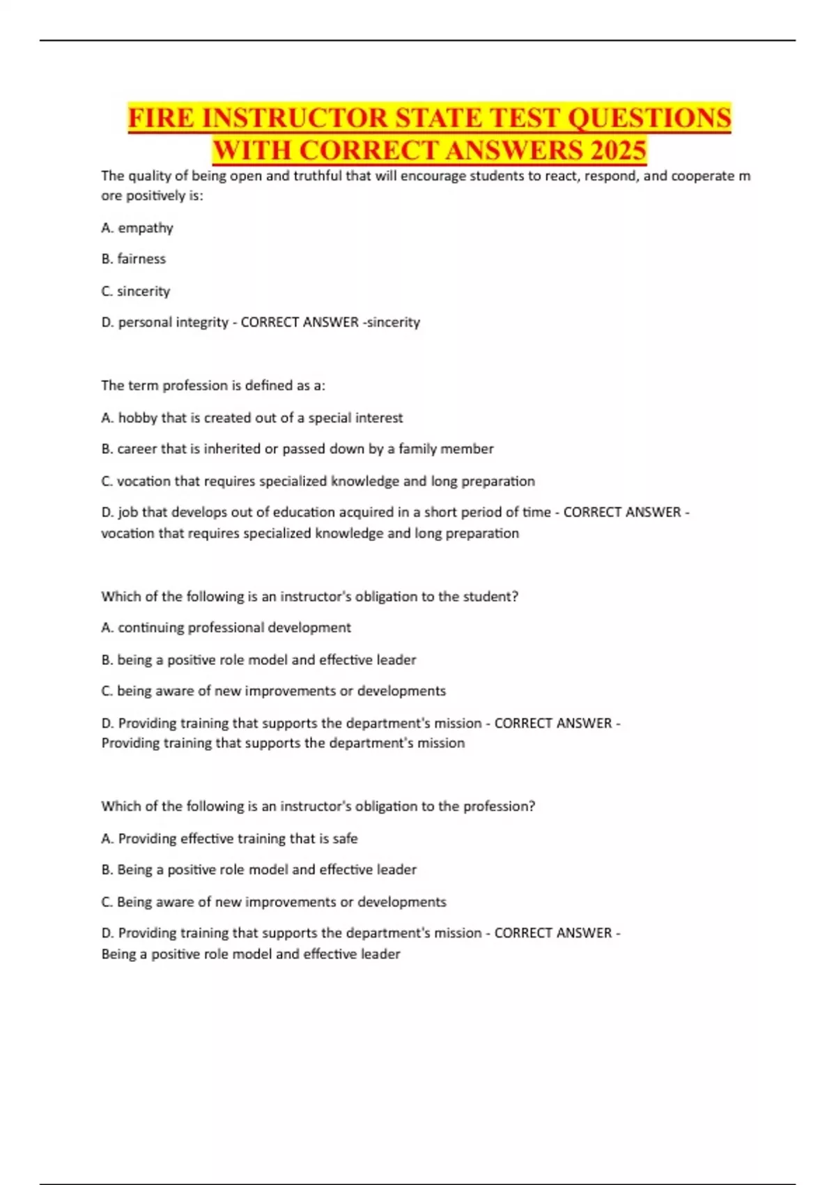 FIRE INSTRUCTOR STATE TEST QUESTIONS