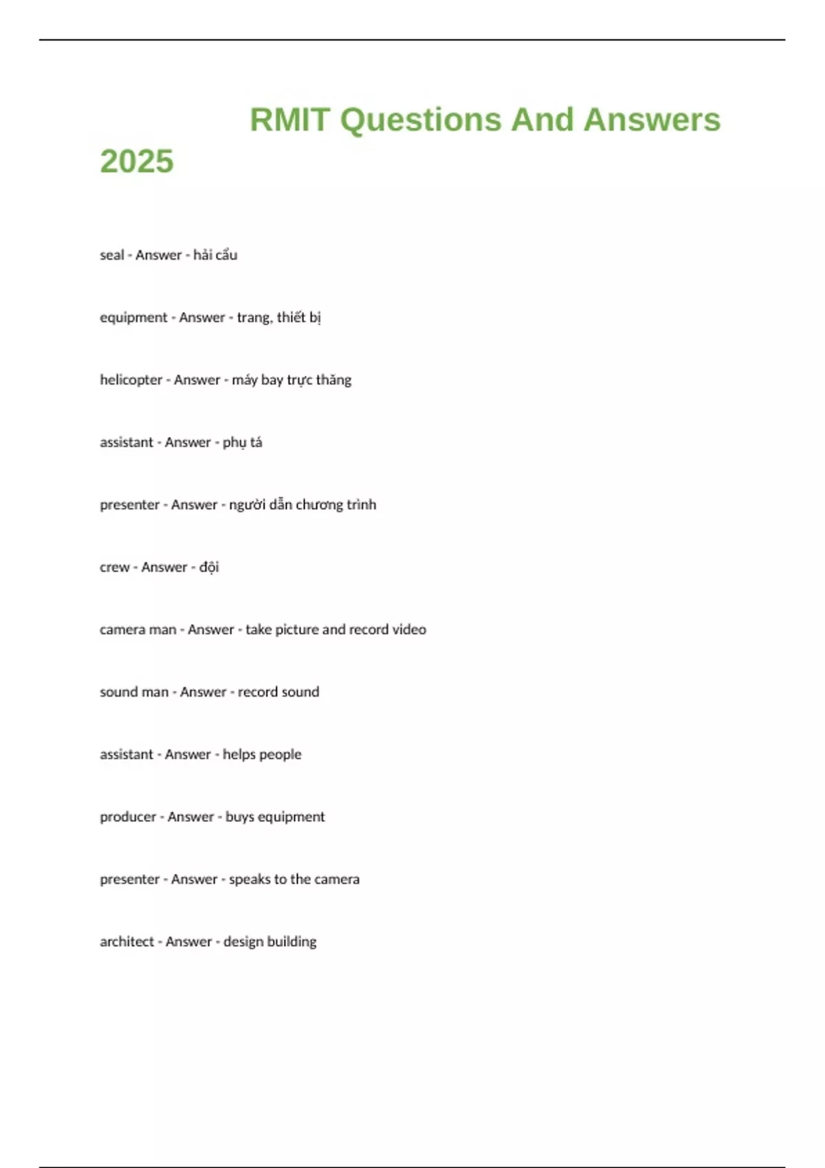 assistant - Answer - phụ tá