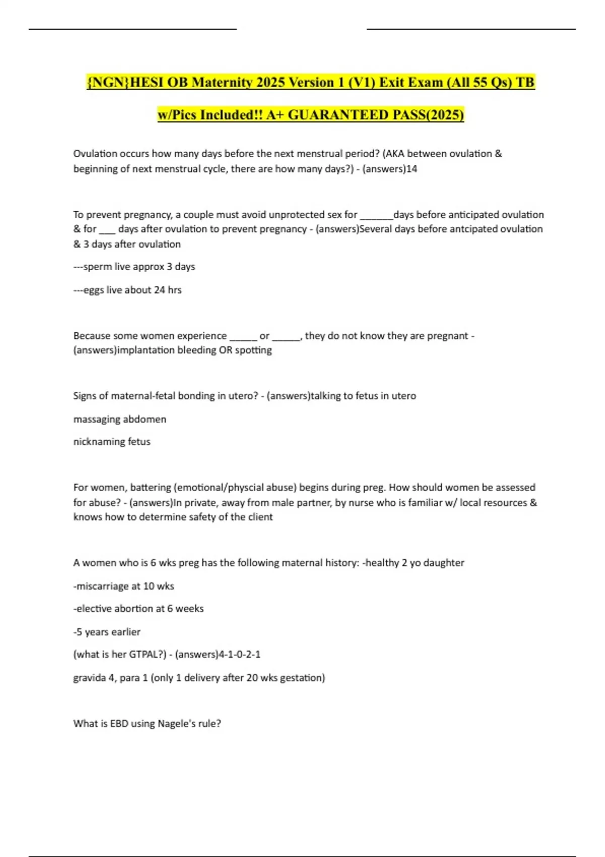 {NGN}HESI OB Maternity 2025 Version 1 (V1) Exit Exam (All 55 Qs) TB