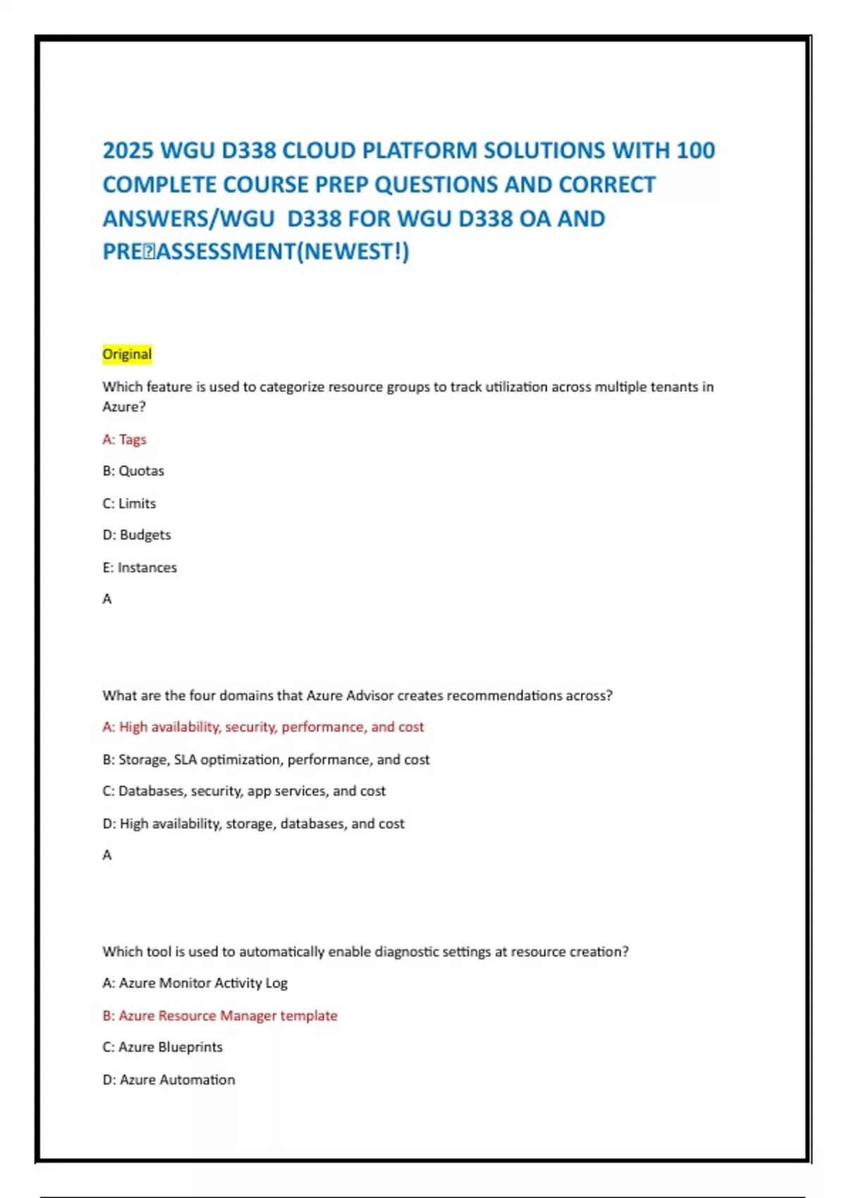2025 WGU D338 CLOUD PLATFORM SOLUTIONS WITH 100 COMPLETE COURSE PREP QUESTIONS AND CORRECT ANSWERS/WGU D338 FOR WGU D338 OA AND PRE ASSESSMENT(NEWEST!) 2025 WGU D338 CLOUD PLATFORM SOLUTIONS WITH 100 COMPLETE COURSE PREP QUESTIONS AND CORRECT ANSWERS/WGU D338 FOR WGU D338 OA AND PRE ASSESSMENT(NEWEST!)