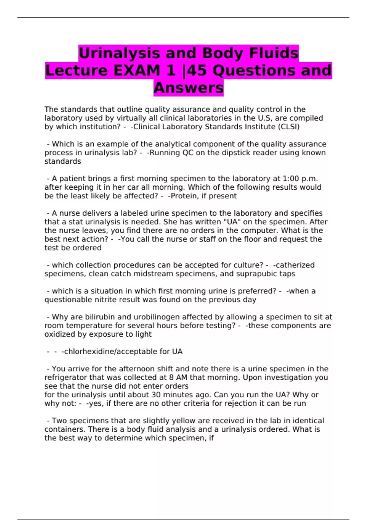 Urinalysis and Body Fluids