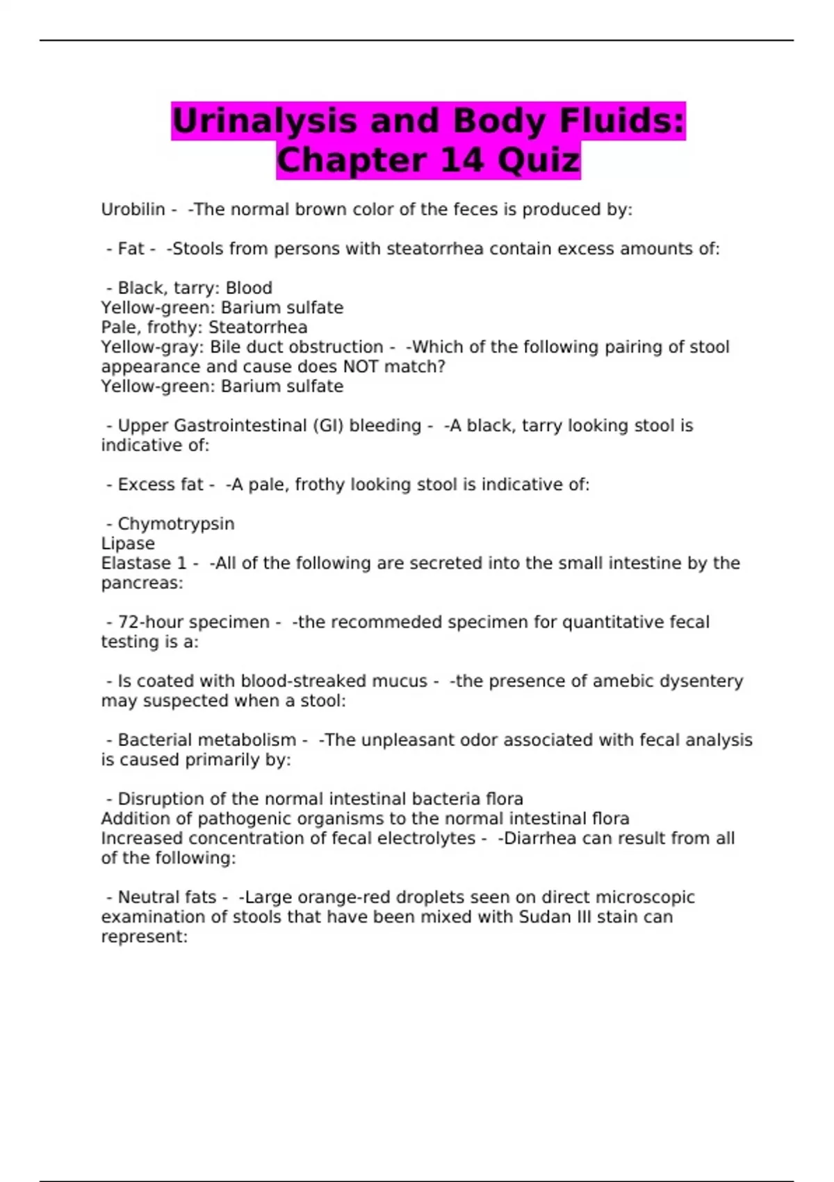 Urinalysis and Body Fluids: