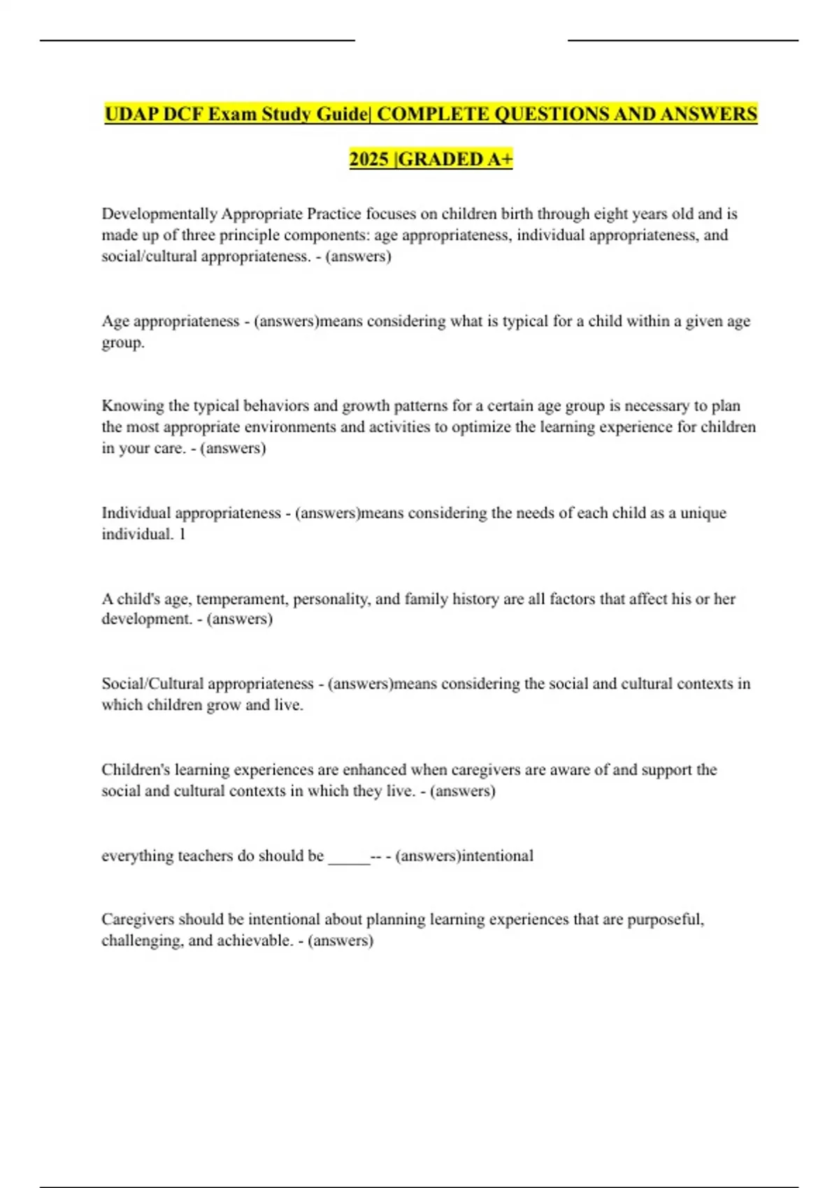 UDAP DCF Exam Study Guide| COMPLETE QUESTIONS AND ANSWERS