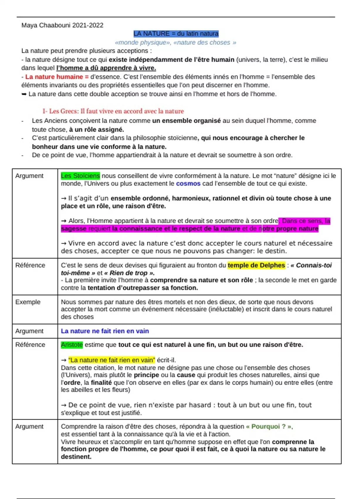 Argument Les Stoïciens nous conseillent de vivre conformément à la nature. Le mot “nature” désigne ici le