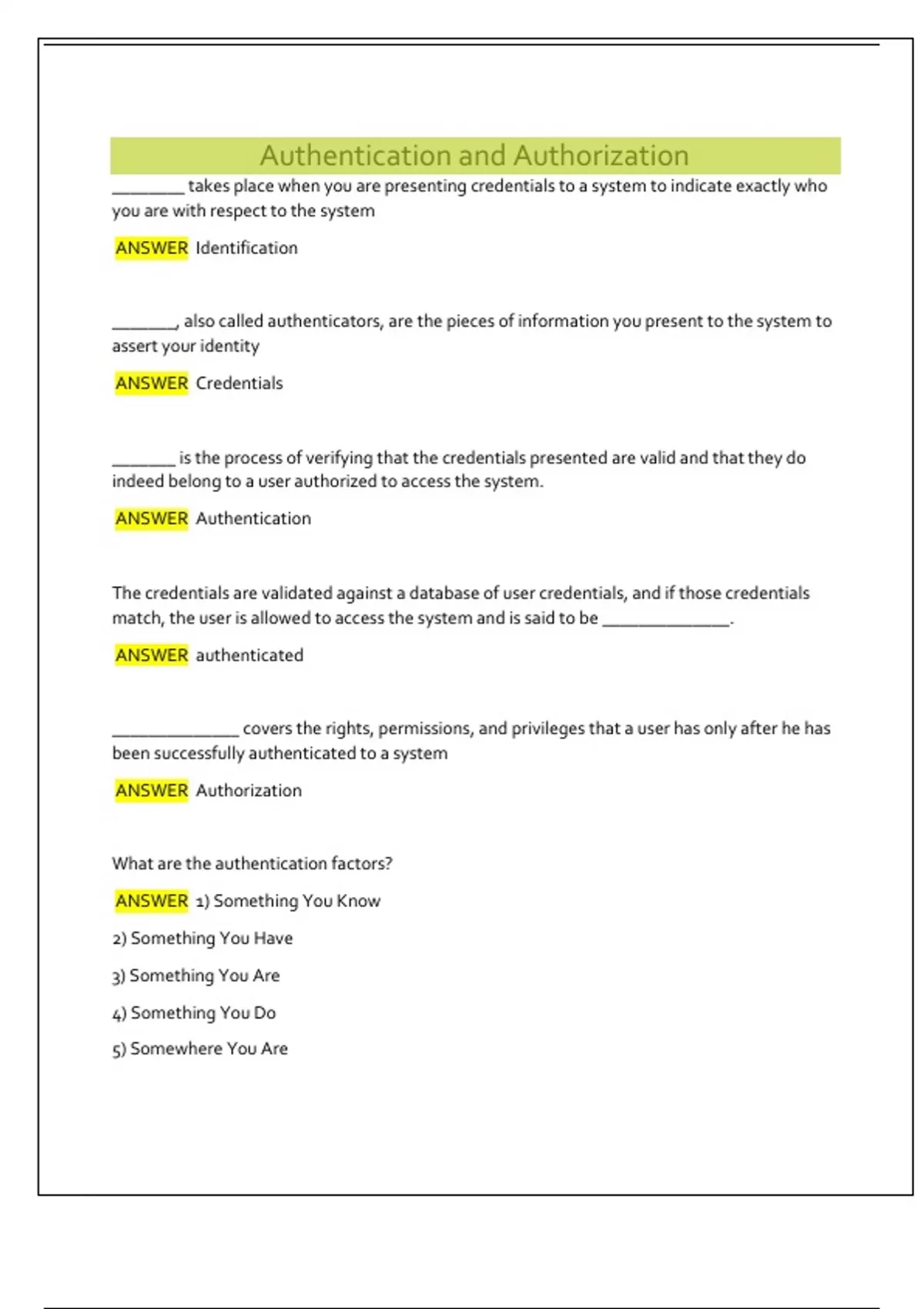 ANSWER 1) Something You Know