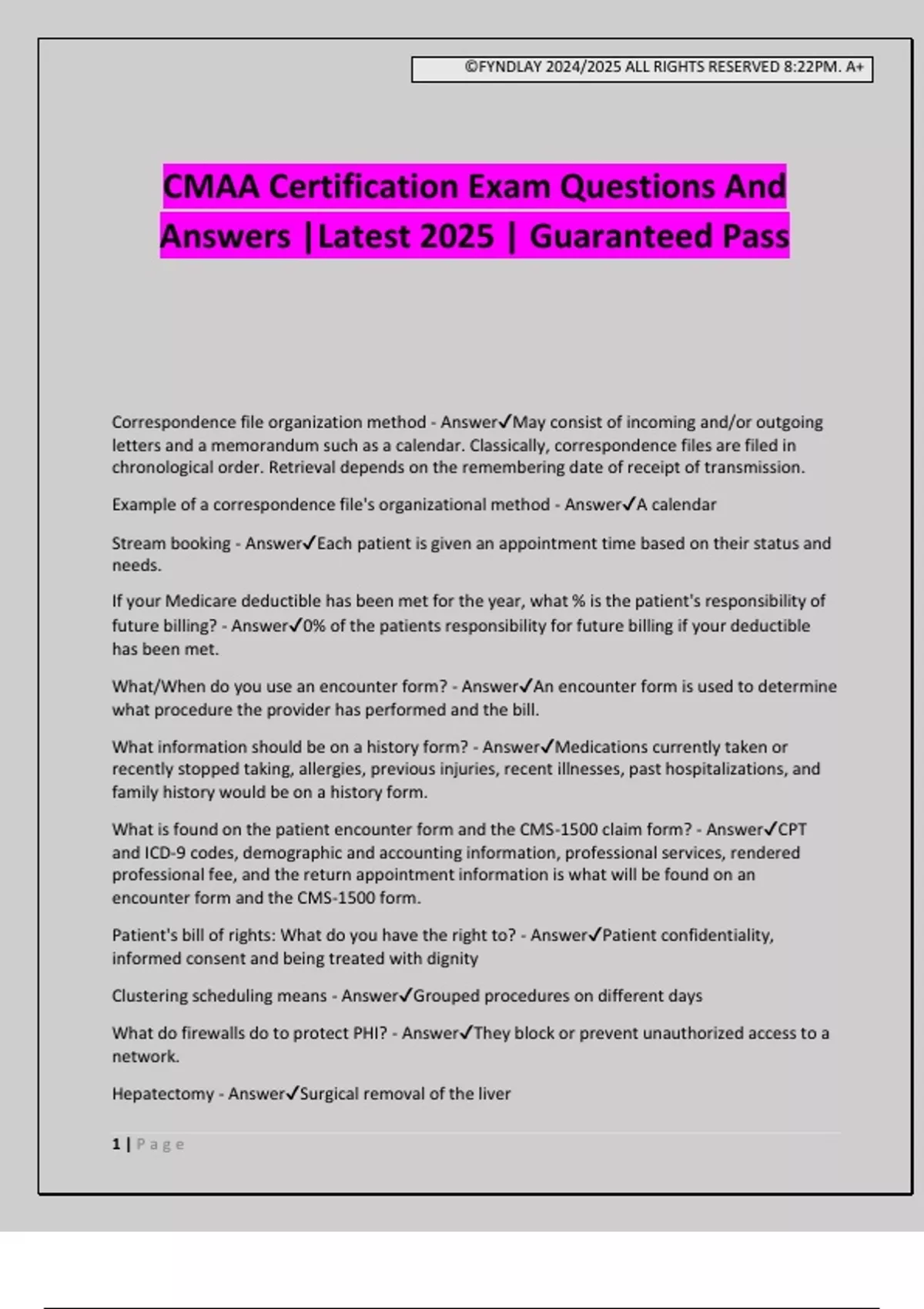 CMAA Certification Exam Questions And