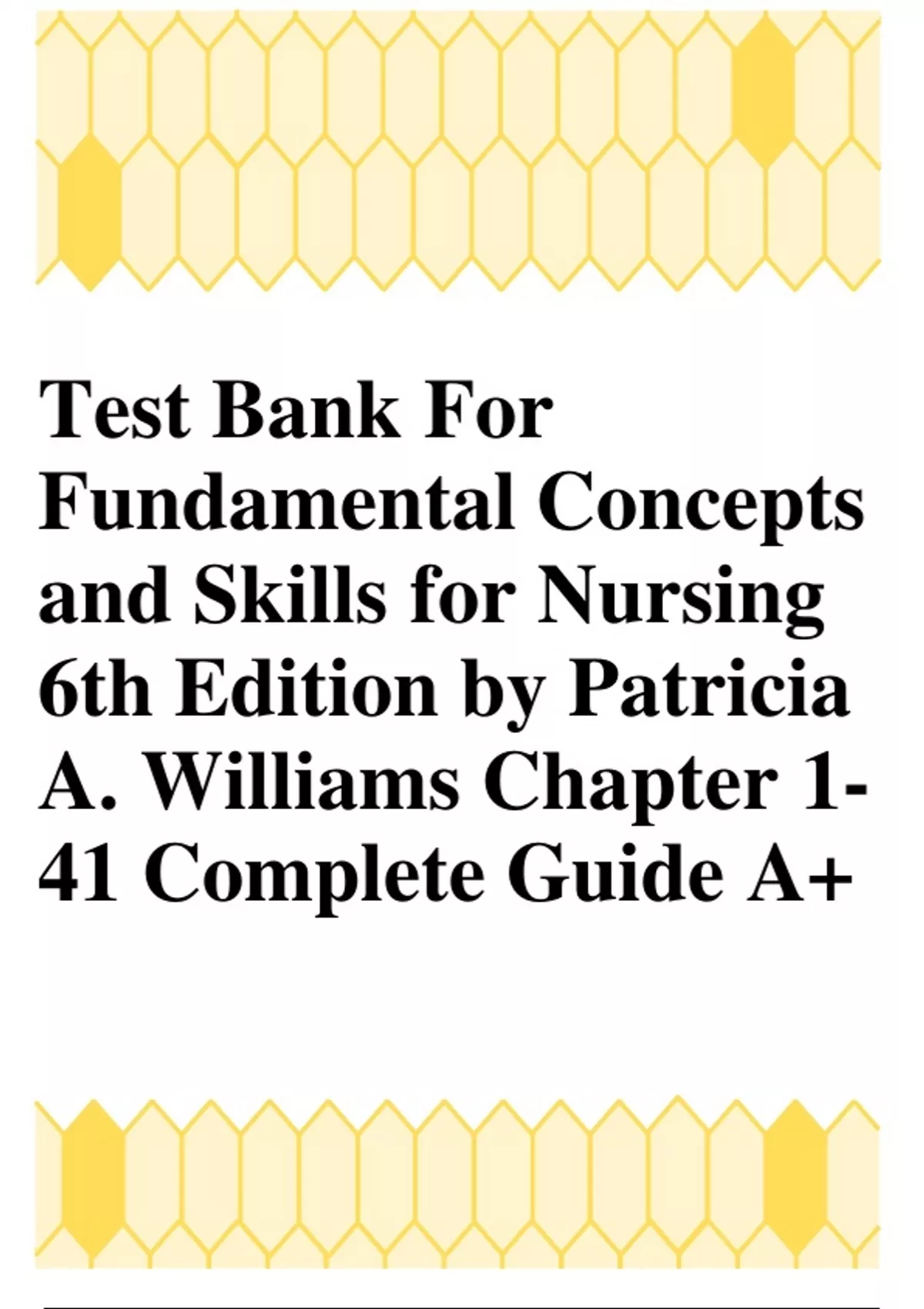 Test Bank For Fundamental Concepts and Skills for Nursing 6th Edition by Patricia A. Williams Chapter 1- 41 Complete Guide A+
