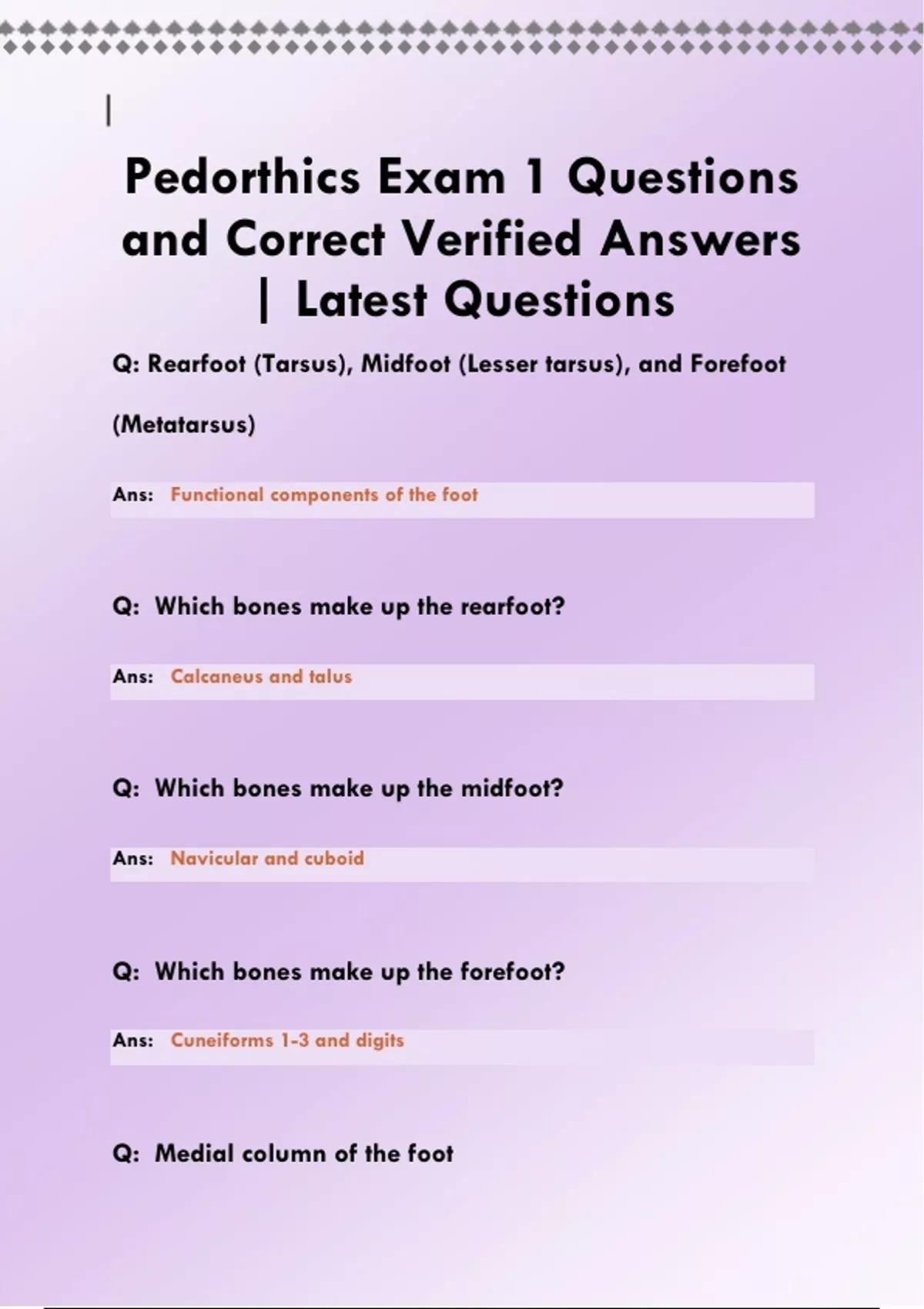 Pedorthics Exam 1 Questions and Correct Verified Answers | Latest Questions