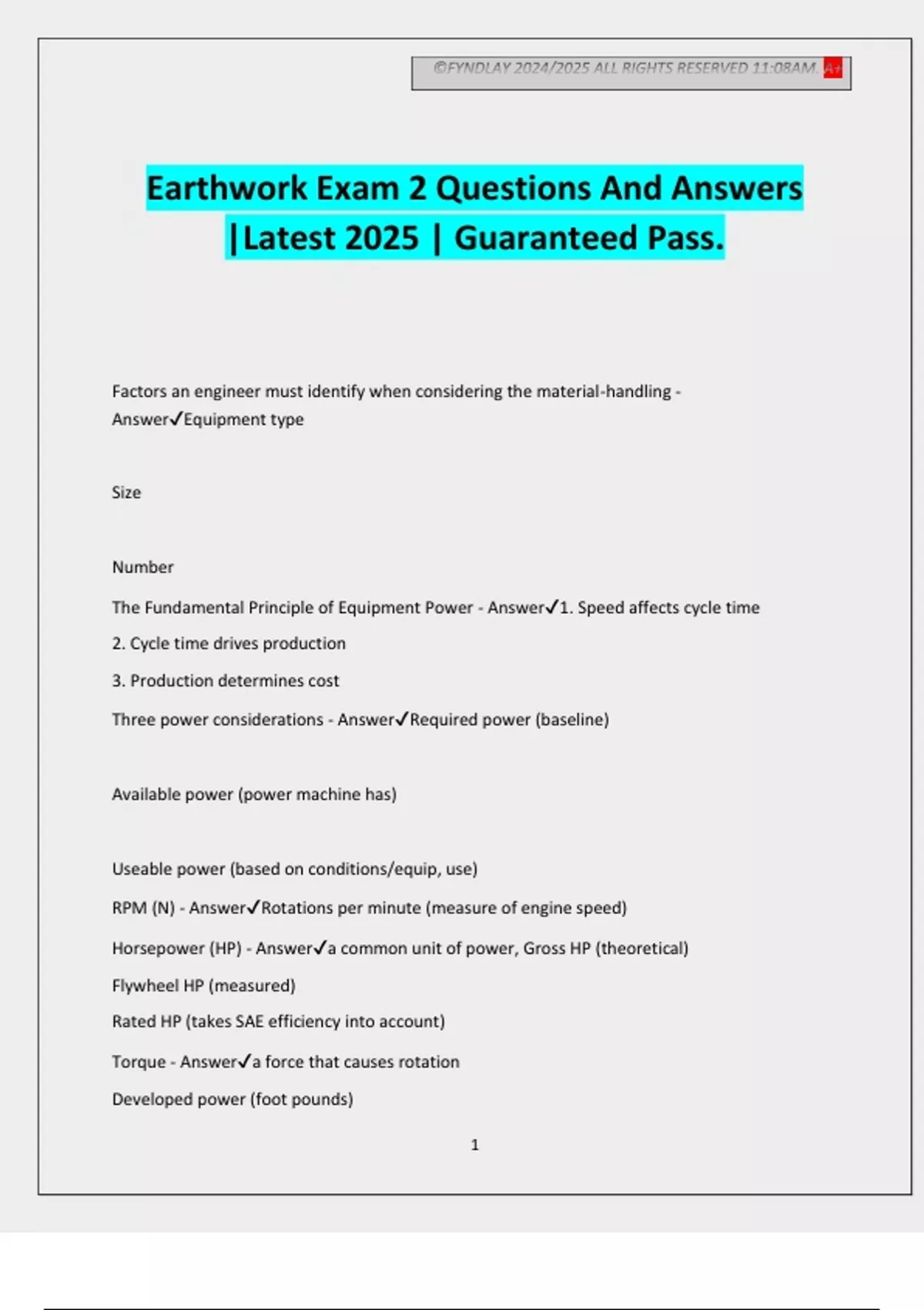 The Fundamental Principle of Equipment Power - Answer✔1. Speed affects cycle time