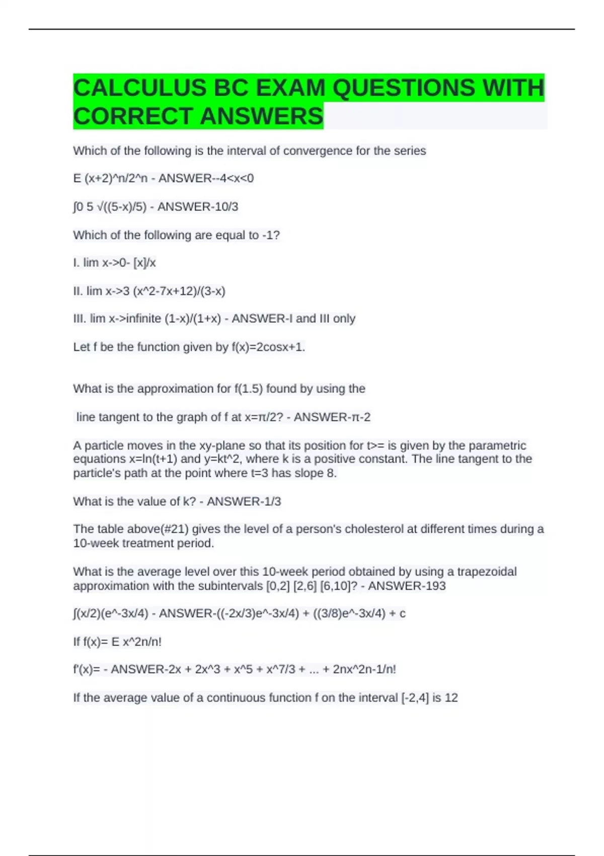 CALCULUS BC EXAM QUESTIONS WITH CORRECT ANSWERS