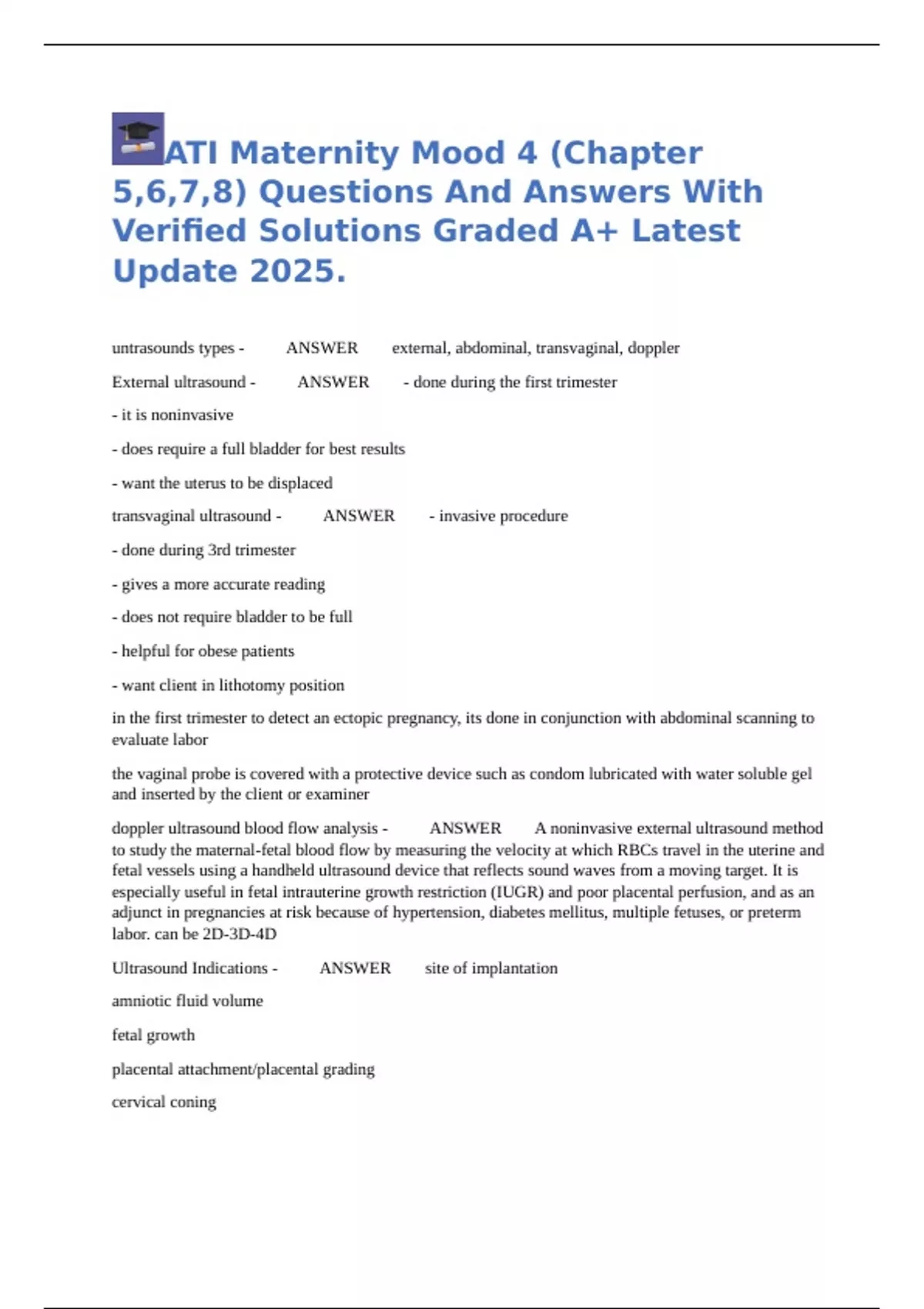 Ultrasound Indications - ANSWER site of implantation
