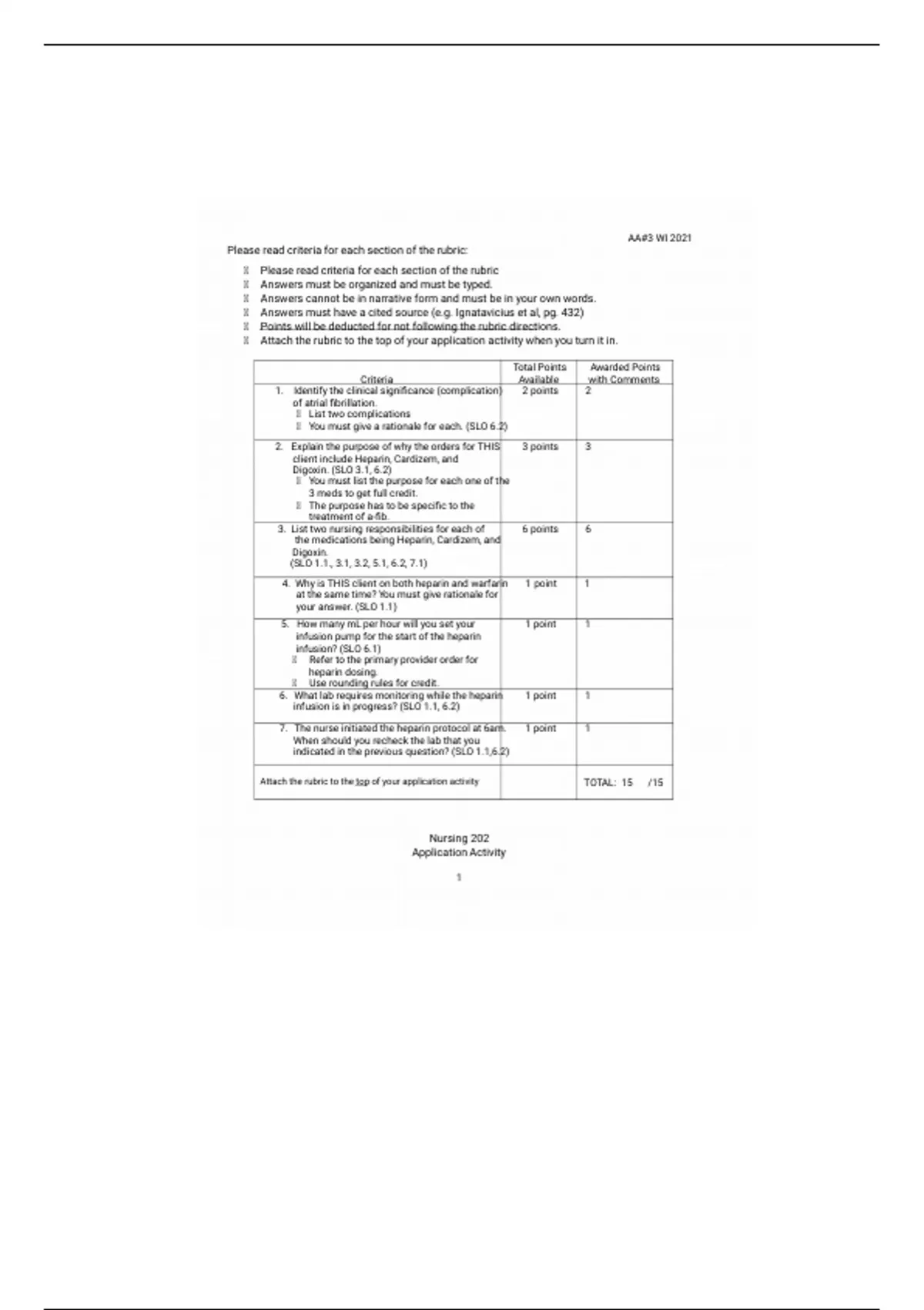 Attach the rubric to the top of your application activity TOTAL: 15 /15
