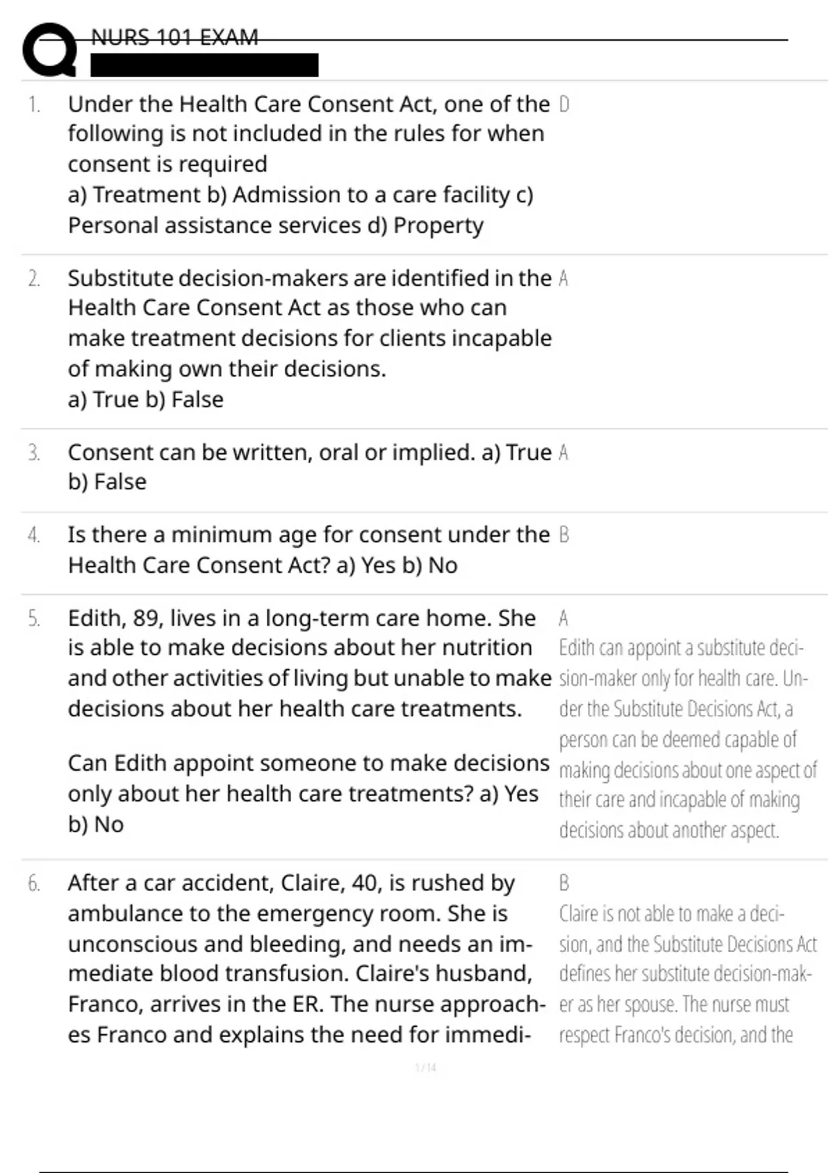 1. Under the Health Care Consent Act, one of the D
