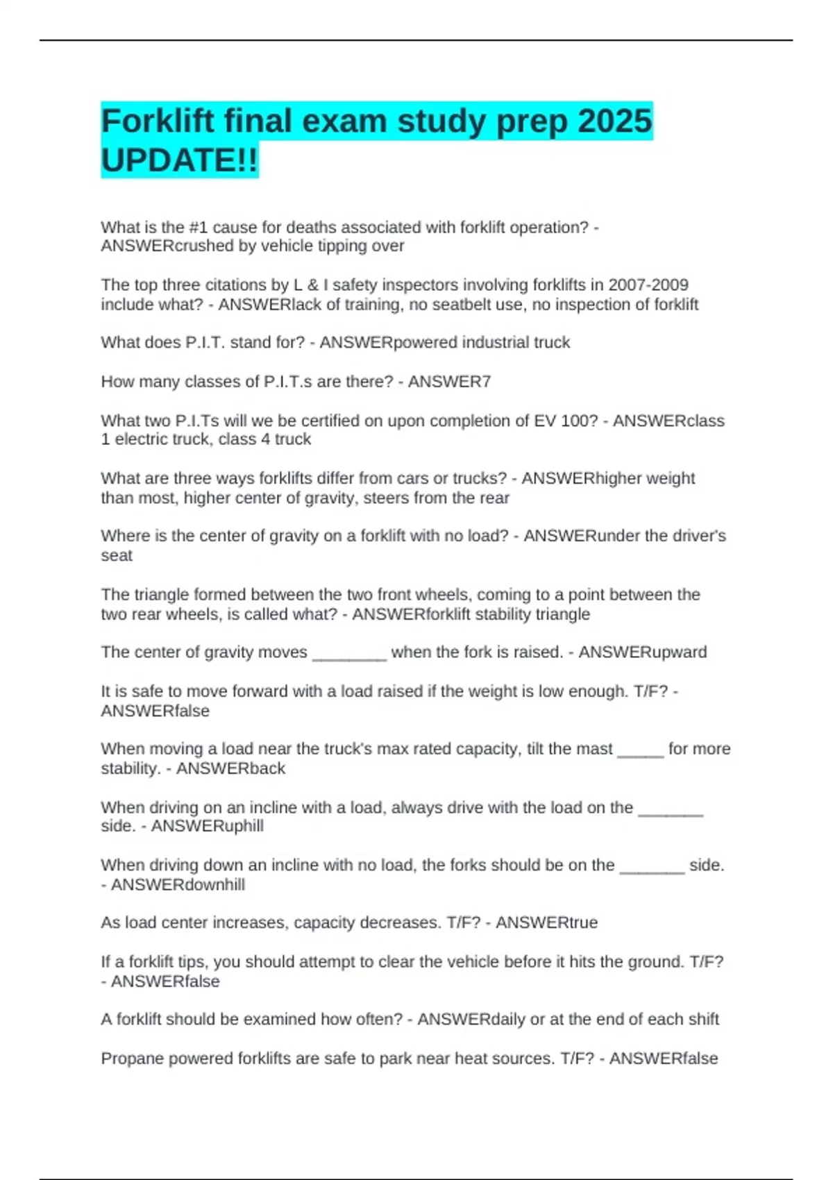 Forklift final exam study prep 2025 UPDATE!!