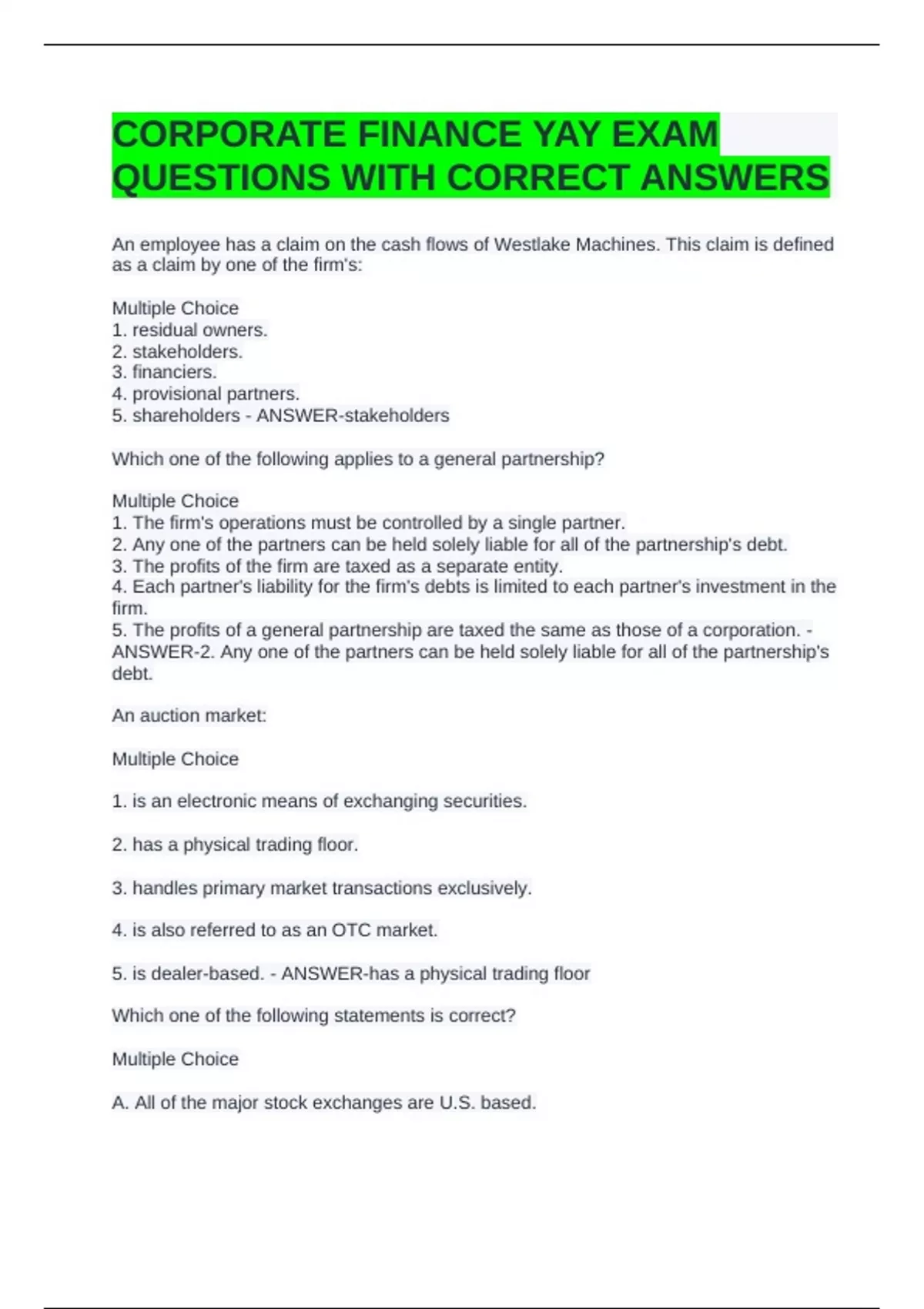 CORPORATE FINANCE YAY EXAM QUESTIONS WITH CORRECT ANSWERS