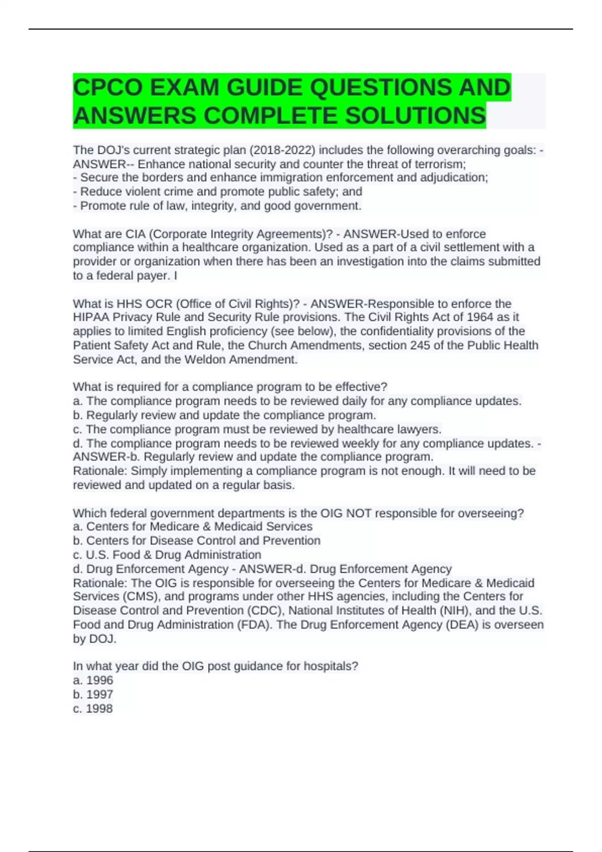 CPCO EXAM GUIDE QUESTIONS AND ANSWERS COMPLETE SOLUTIONS