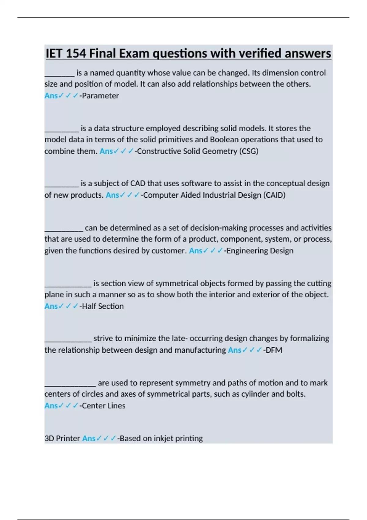 (Computer Aided Industrial Design) Ans✓✓✓-A subset of CAD that uses software