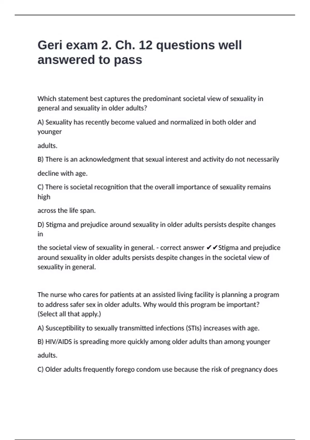 Geri exam 2. Ch. 12 questions well answered to pass