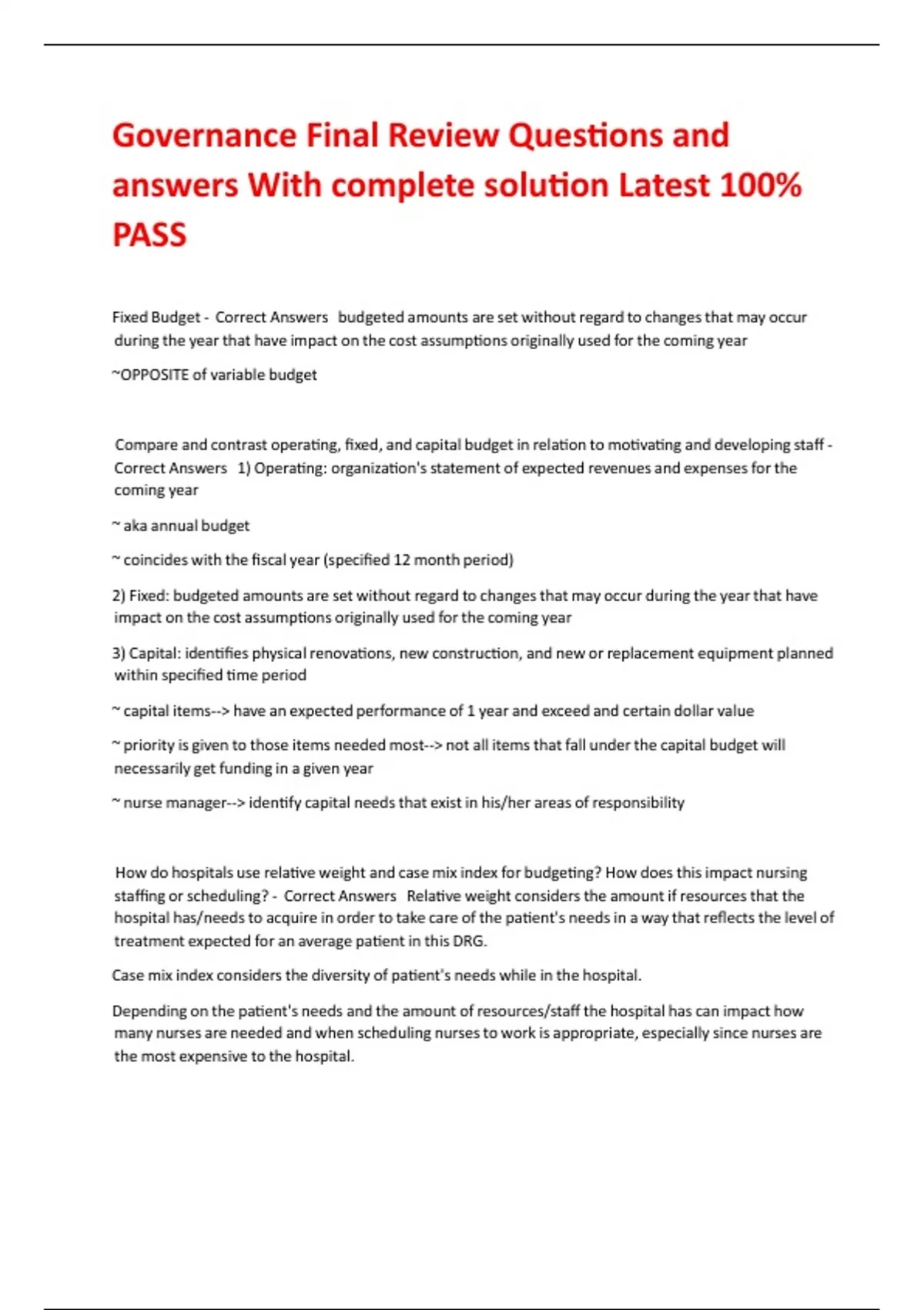 Governance Final Review Questions and answers With complete solution Latest 100% PASS