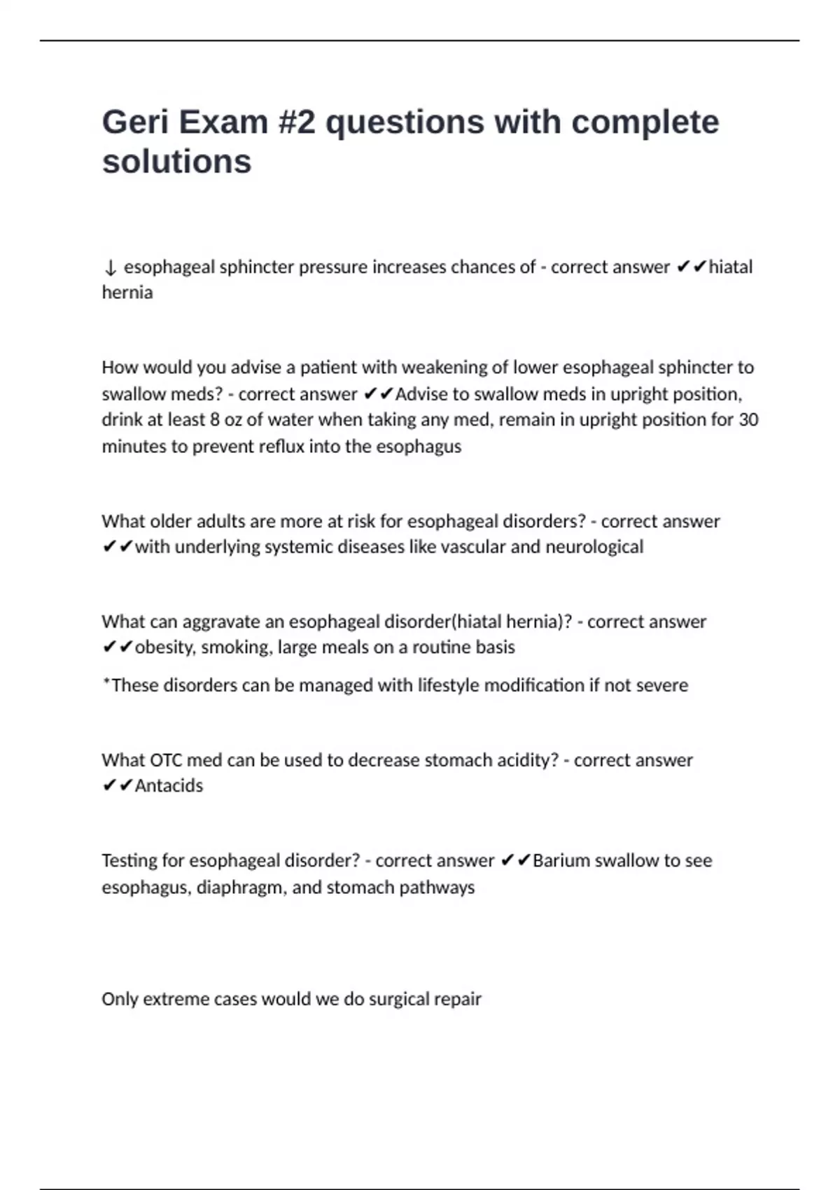 Geri Exam #2 questions with complete solutions