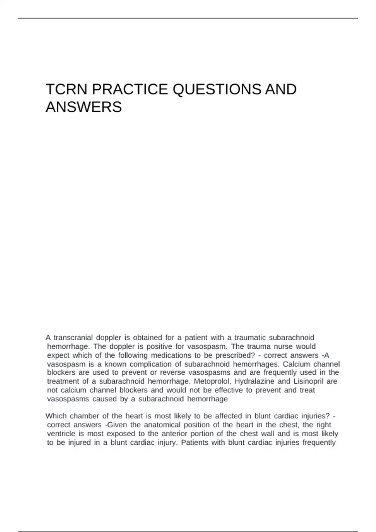 TCRN PRACTICE QUESTIONS AND