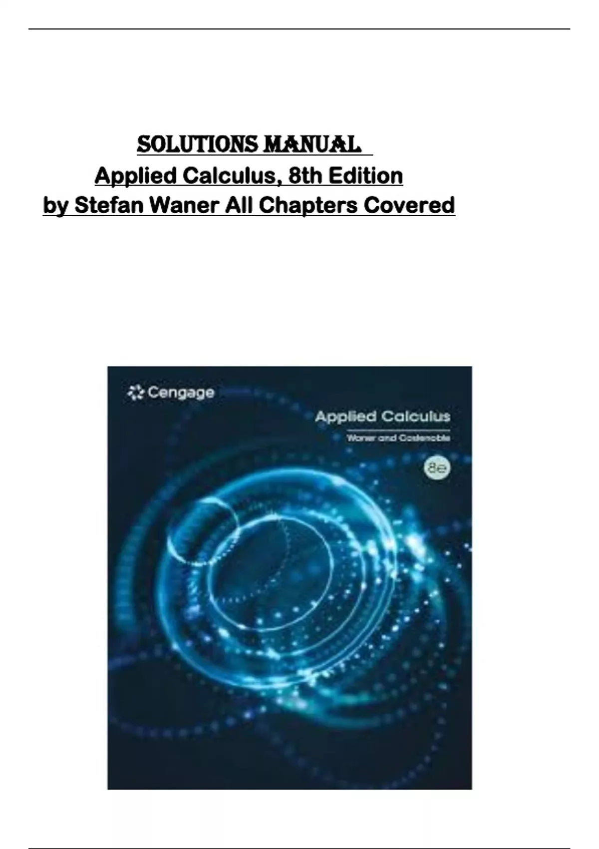 Solutions Manual for Applied Calculus, 8th Edition by Stefan Waner All Chapters Covered