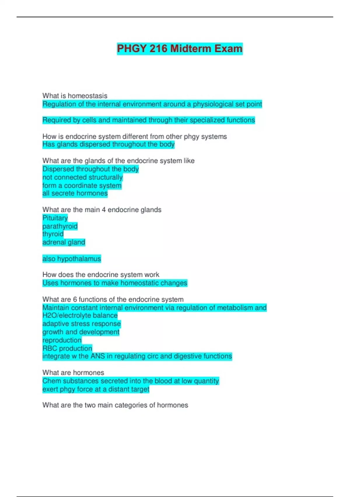 How is endocrine system different from other phgy systems