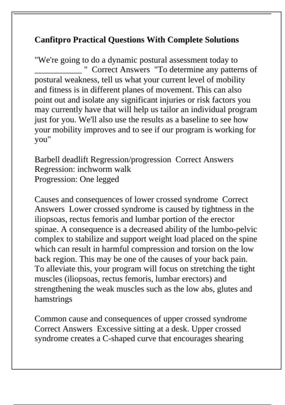 Correct Answers Excessive sitting at a desk. Upper crossed